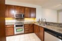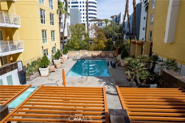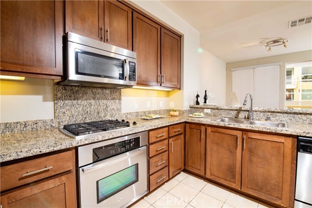 Welcome to your modern dream condo. This 2 bed / 2 bath 1050 sf open concept design is ready for its new owners. This unit showcases spacious cooks kitchen, with a generous sized breakfast bar and granite countertops, stainless steel appliances, dishwasher, custom maple cabinetry, recessed lights and AC. The living and dining room leads to a balcony. The en-suite primary bedroom offers a walk-in closet with a double vanity sink & granite countertops. The second bathroom includes a bathtub /shower. The laundry closet includes a front-loading stacked washer/dryer combo unit & there is plenty of storage. Two tandem parking spaces are assigned as well as a storage locker that accommodates package deliveries. There is also plenty of guest parking in the secured garage as well as electric vehicle charging stations! The amenities in this gorgeous resort style condo includes: pool, spa, cabanas, fitness center, club house w/ Kitchen, game room, entertainment lounge with large flat TV's , outdoor BBQ's ,fireplaces a dog park & 3 elevators, etc!. Across the street is the future home of the L.A. Rams' New Training Facility!. Don't Miss this wonderful opportunity to own in the heart of Warner Center & be conveniently located to all the shopping / dining and concert venues.