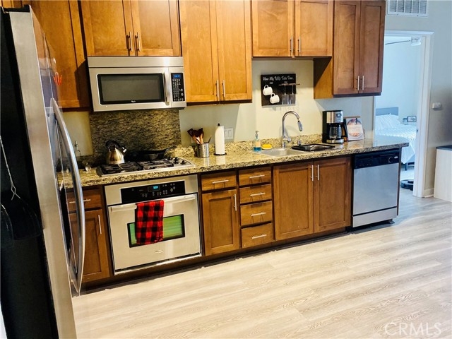 Welcome to the Ascent, a resort style building! The property has a pool, spa, gym, outdoor lounge, built in bbq, dog park, gated entry, and is nothing short of luxury! Conveniently located near the Topanga Mall, The village, restaurants, movie heater, plus easy access to the 101 fwy. The unit is bright and airy with a balcony off the living room, and 640 sqft with an open floor plan. The 1+1 includes a master bedroom and bath, with a walk in closet, and in unit w/d. There is a gated parking structure which includes two assigned spaces and guest parking is available as well. In addition, the building has EV chargers for their residents. The Hoa also has an onsite office for owners/residents and the monthly fee includes the trash and gas. Though the Ascent is already stunning, there are currently renovations updating parts of the communal areas/ amenities. This is a must see!