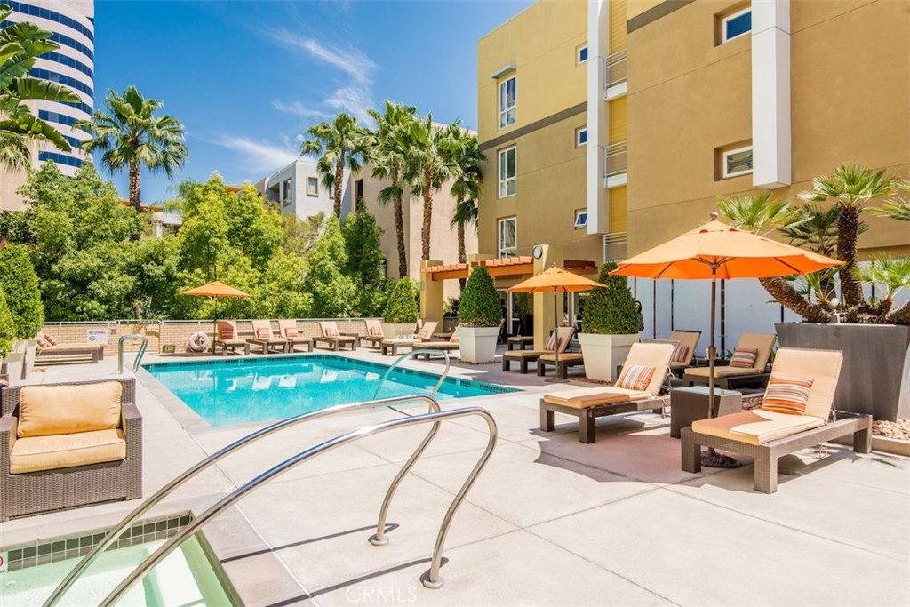Located at the Ascent at Warner Center within blocks of The Village, the future Promenade 2035, the Topanga Mall, and Warner Park, this contemporary resort style condo is a true urban oasis. This gorgeous corner unit offers one of the best floor plans for maximum privacy, with 2 beds + 2 baths on opposite sides of the unit, and an open concept layout for the living areas. High ceilings and large windows let plenty of natural light in, accentuating the spacious living and dining areas. Built in 2010, it offers an abundance of features and amenities that make this an ideal home ready for move-in, including a fully appointed kitchen with stainless steel appliances; granite counters in the kitchen and baths; plenty of storage including a walk-in closet, abundant kitchen cabinets, and a storage unit in the garage; in-unit laundry; and 2 assigned parking spaces. Community amenities are top notch including a sparkling swimming pool, spa, and lounges; wifi-enabled common areas; fitness center with cardio, weights, and TVs; a clubhouse with conference center, screening room, kitchen, and game room; outdoor barbecues and alfresco lounges with fireplaces; electric vehicle charging stations; security patrol; plus, it's pet friendly with a dog run! This unit is the whole package, and within just blocks of all the best shopping, dining, and entertainment that Woodland Hills has to offer.
