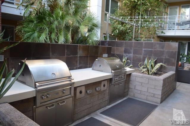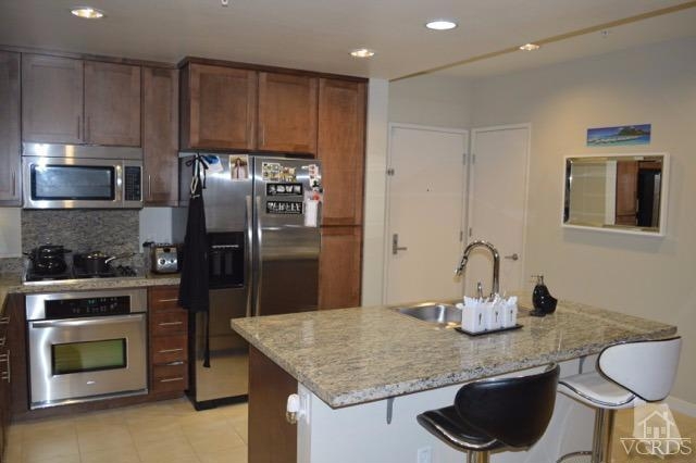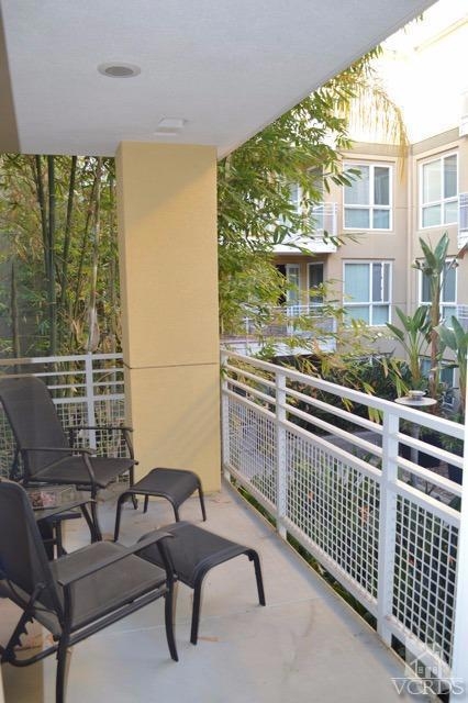 Spectacular modern condo built in 2010 in the heart of the Warner Center at the Ascent offering highly desired amenities and conveniences. Private corner unit in the back with only one common wall and a view of trees. This unit shows light and bright and offers plenty of room and style for entertaining. There is a large living room with a balcony, a granite island kitchen with granite countertops, built-ins and a great room style floorplan. There is a dining area and two separate wings for the bedrooms. Spacious master suite with a walk-in closet and a spa quality bathroom with dual sinks. Stackable washer & dryer in the closet, central air and heat and a separate storage area. Amazing resort-like grounds offers access to an onsite fitness center, resort-style pool w/Wi-Fi enables cabanas, a clubhouse, a movie theater, an outdoor lounge area with fireplaces, tranquil courtyards, a BBQ area and a dog park. There are two side-by-side parking spaces. Great location and waiting just for you!