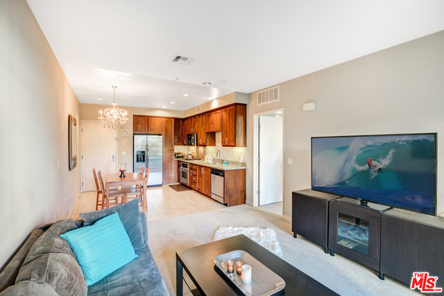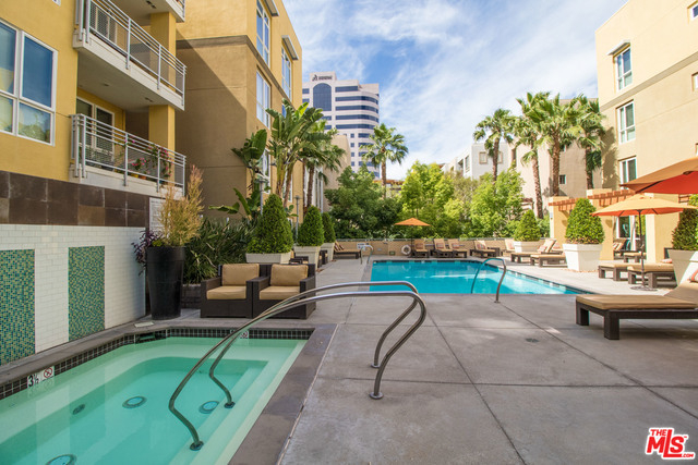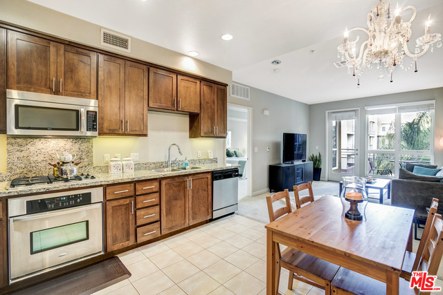 Rare 1 bedroom / 1 bathroom (biggest 1BR/1A in the complex) open floor plan with floor to ceiling windows offering ample natural light. An open concept dining/living/kitchen area which includes stainless steel appliances. A big master bedroom with a walk-in closet and updated private bathroom with double vanity sinks. Built-in cabinets in the bathroom and a stacked washer and dryer conveniently located within the unit.Inside location away from the street, this very bright eastern exposure upper floor unit enjoys an unmatched view of the courtyard and the pool. Also rare and very desirable is the side-by-side parking in the secure underground parking, near the elevator, a big plus. Additional private storage located on the same level close to the unitLocated in the heart of woodland hills and close to the freeways, Ascend at Warner center, a newer condominium complex built in 2010, offers residents resort like amenities.
