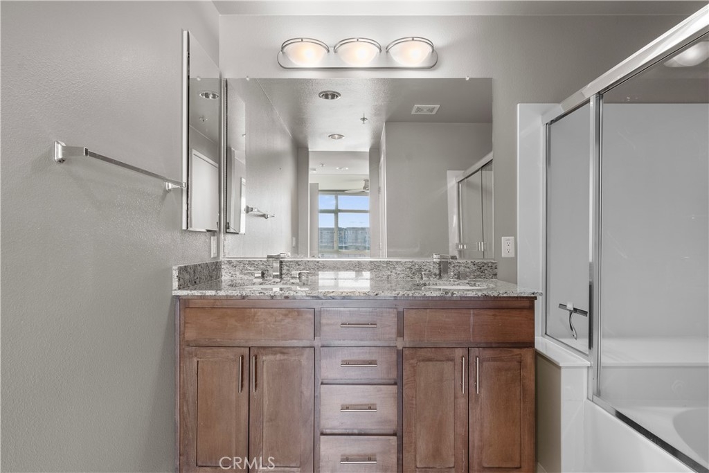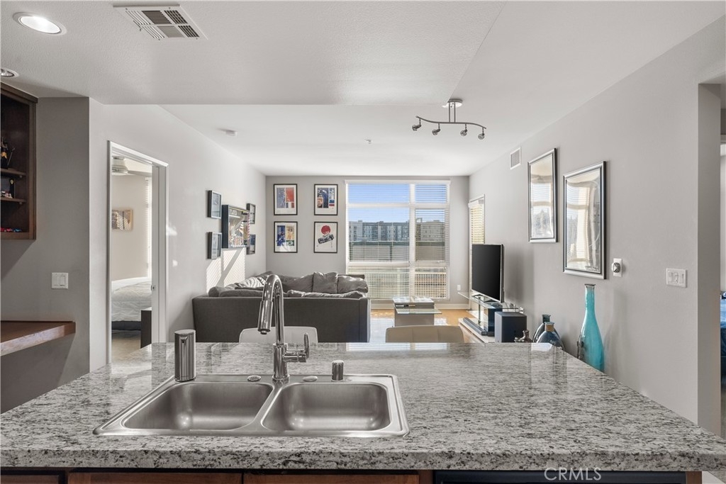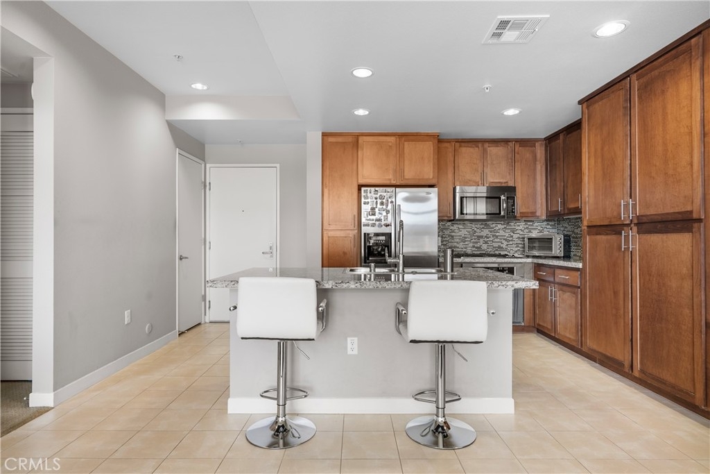 Welcome to the premier luxury residence at The Ascent! Located on the top floor, this expansive 2 bedroom, 2 bathroom Plan B corner unit spans 1,050 sq. ft. and offers the perfect blend of modern design and comfort. Featuring an open-concept layout, this immaculate home is filled with natural light pouring in through south-facing windows. The beautiful kitchen is equipped with stainless steel appliances, maple cabinetry, granite countertops, and a generously sized island with seating! Through the spacious living area, enter your own private balcony to enjoy the view or take in the fresh air and sun! What is best about this floor plan is the privacy offered as the two bedrooms are located on opposite sides of the living area. The primary bedroom features a walk in closet, a generously sized ensuite bathroom and large windows to let in a ton of natural light. The second bedroom is located next to the full bathroom, making it convenient for all. Additional features of this home include in-unit washer and dryer, ample storage space, central heating and air conditioning for comfort year-round. Unit comes with two side by side parking spaces in the secure underground garage. There is plenty of guest parking as well as electric vehicle charging stations.The Ascent community offers an exceptional range of amenities: a resort-style pool and spa, outdoor barbecues, dog park, clubhouse with a kitchen, lounge area, meeting areas, game tables, televisions, a private gym and so much more! Located in a vibrant area, this community is within walking distance to the Westfield Topanga Mall and The Village. There is so much to experience and see around the neighborhood! Don’t miss out on this one!