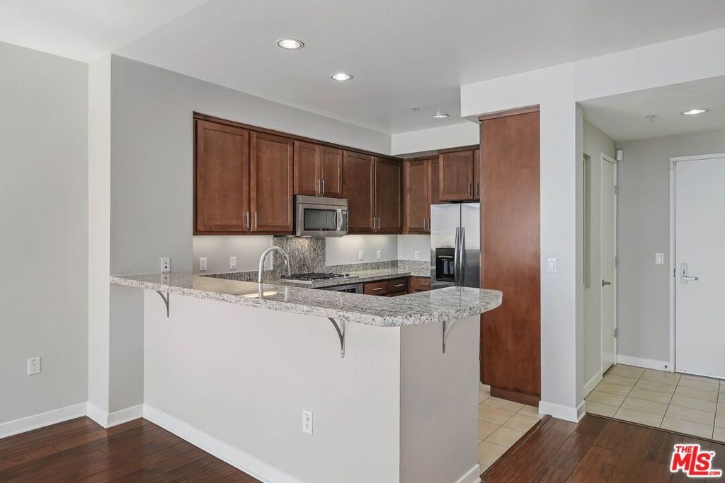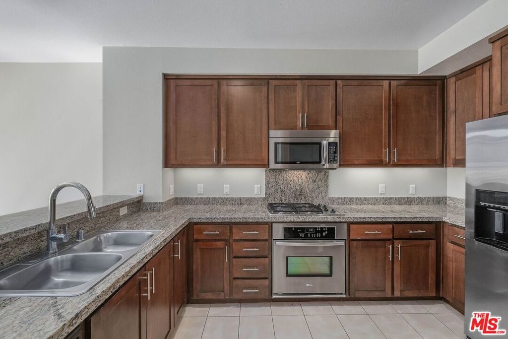 Welcome to luxury living at Ascent at Warner Center, located in the heart of prime Woodland Hills. This highly coveted top-floor unit offers a perfect blend of sophistication and comfort, featuring 2 bedrooms and 2 bathrooms across 1,050 sq ft of living space. Nestled in the desirable east wing of the building, this home boasts an open and inviting floor plan drenched in natural light. The west-facing living area is a true highlight, offering a tranquil ambiance and direct access to a private patio, perfect for enjoying stunning sunset views. The kitchen is a chef's dream, equipped with granite countertops, a breakfast counter, and stainless steel appliances, providing both style and functionality. The south-facing bedrooms enjoy softer natural light, creating a peaceful retreat at any time of the day. The double-paned windows throughout the unit reduce energy usage and help keep out unwanted noise, enhancing the home's overall comfort. With ample storage and closet space, this unit also includes the rare benefit of a private storage locker in the community garage, ensuring all your belongings have their place. Modern conveniences include an in-unit laundry with a washer and dryer, central air and heat, wiring for ADT security service, and a Ring video doorbell. Two assigned side-by-side parking spaces with easy access to both the main lobby elevator and the northeast elevators make coming and going a breeze. The Ascent offers resort-like amenities, including a state-of-the-art fitness center, a Clubhouse with a billiard table and playroom, a lounge area, a large swimming pool, a relaxing spa, a dog park, outdoor barbecue and fire features, and well-maintained grounds. Located conveniently near The Village, Warner Center Park, Westfield Topanga Mall, and a wide array of casual and upscale dining options, this exceptional residence at Ascent at Warner Center offers the best of Woodland Hills living.