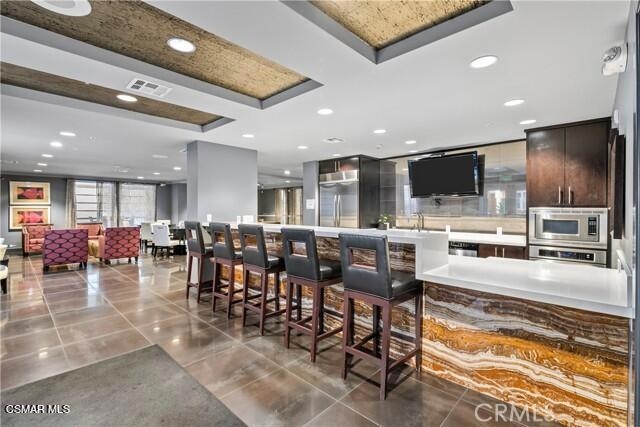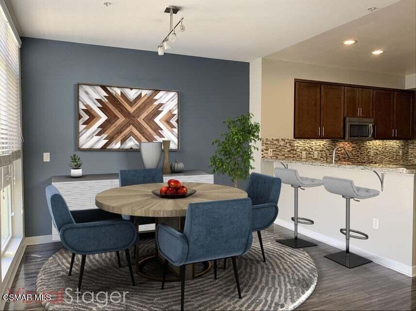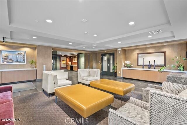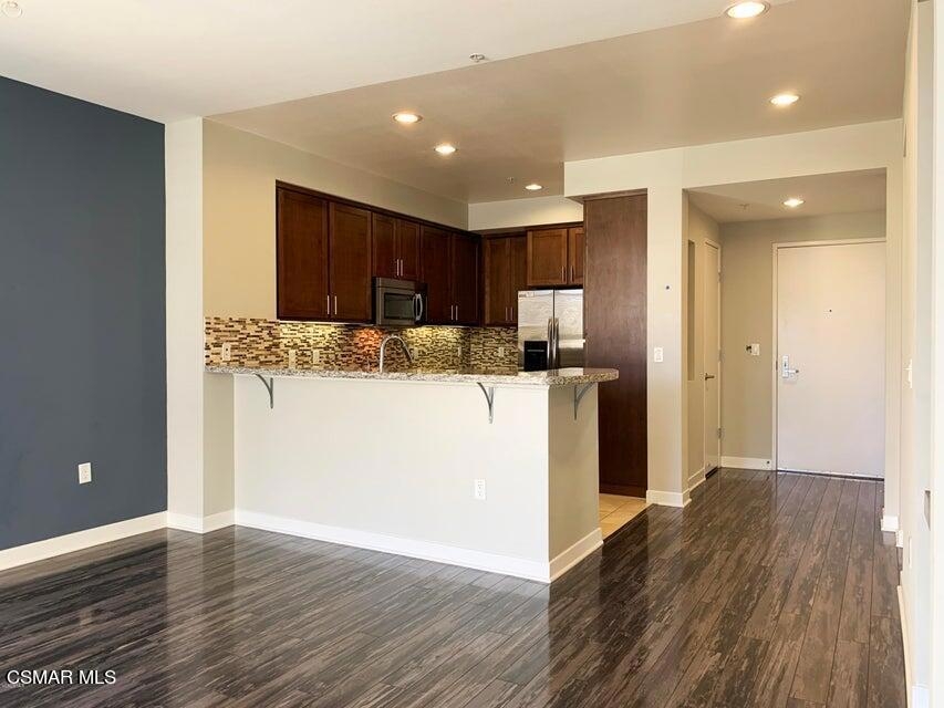 Modern move-in ready 2 bedroom 2 bathroom luxury condo located in prime Woodland Hills neighborhood. This corner unit is located at the top floor overlooking the pool area. It has a spacious kitchen with granite counter tops, maple cabinets, stainless steel appliances and breakfast bar, upgraded laminate flooring, master bedroom with en-suite bathroom, double vanity sinks, walk-in closet, recessed lighting, balcony overlooking the pool, central heat and air, and a full size stacked washer/dryer. This resort like community offers pool & spa, lounge area, gym, built-in BBQ grills, outdoor fire pit lounge, clubhouse with meeting room, kitchen, TV room and a billiards table perfect for entertaining. Controlled access entry system, gate-controlled covered parking with 2 side by side assigned parking spots side close to the elevator plus a storage space. The community also offers 2 EV charging stations, parcel package lockers, controlled access-entry and guest parking spaces. The complex is located close to restaurants, ''The Village'', Topanga Mall, Warner Center Park and new upcoming projects.