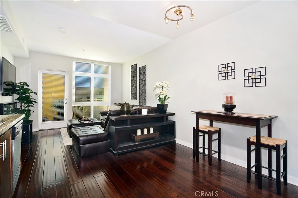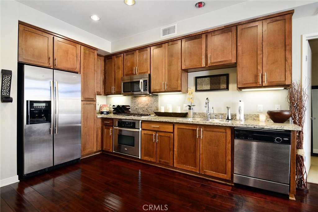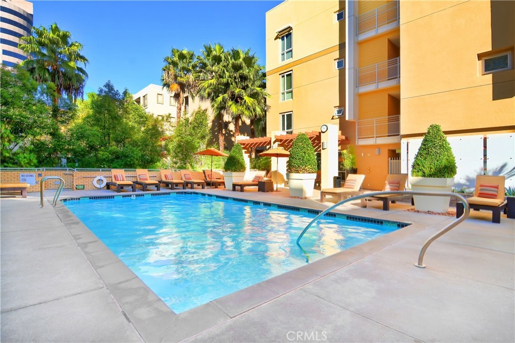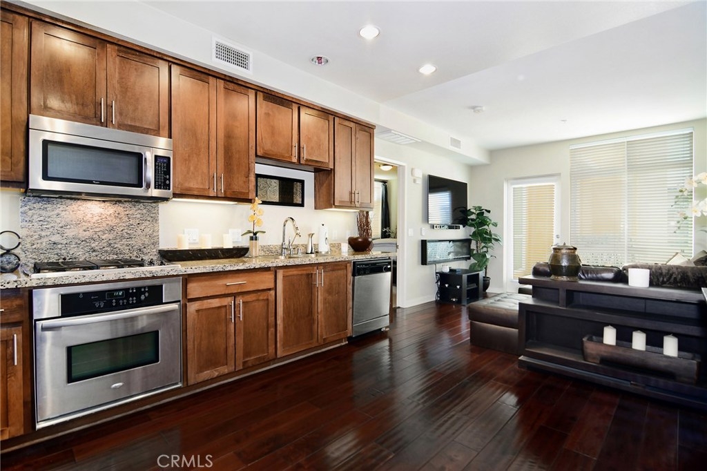 A modern full service luxury building built in 2010, welcome to the ASCENT at Warner Center! This is the unit everyone has been waiting for; an extremely rare 1 bedroom on the TOP FLOOR!!!!!! No neighbors above you AND a corner unit! Immaculate 1 bedroom / 1 bathroom showcasing a fabulous open floor plan with modern HARDWOOD flooring. Spacious cooks kitchen w/Stainless Steel appliances, custom Maple cabinetry & Granite counters. From the living area, inspiring views of the kitchen & outdoors prevail, with access to your private terrace overlooking a private courtyard. Master bedroom is generous in size & comes equipped with a HUGE walk-in closet & luxurious en-suite bath featuring double vanity sinks & Granite counter tops. Full size in unit WASHER & DRYER, plenty of storage, recessed lighting + central heat & air are only a few of the amenities you'll enjoy living here. This unit also comes with 2 reserved parking spaces in the secured garage, near the elevator for convenient access. In addition, there's plenty of guest parking and even offers electric vehicle charging stations! The complex itself features a plethora of amenities: Pool, spa, fitness center, club house w/kitchen, game room, entertainment lounge w/flat panel television, outside barbecues, fire places, dog park, etc! All this located in the heart of Warner Center mere walking distance to The Village, Westfield Topanga Mall, Warner Center Park & Westfield's newest upcoming project "LA Warner Center."
