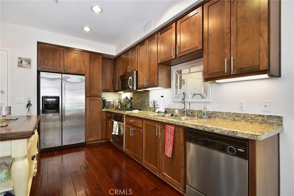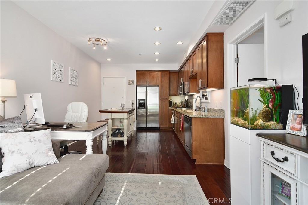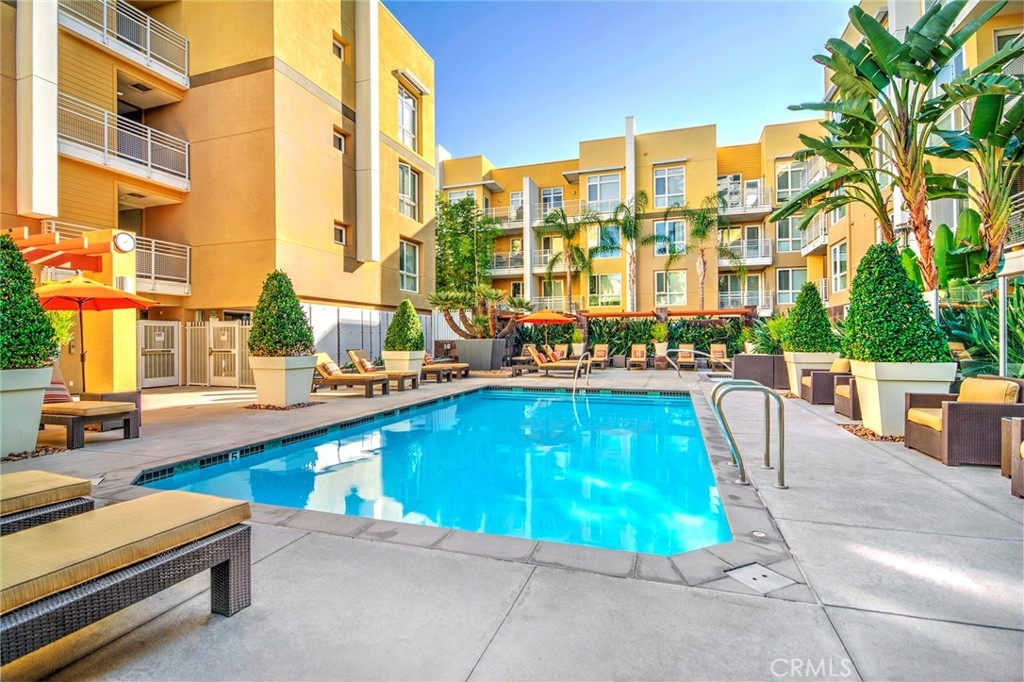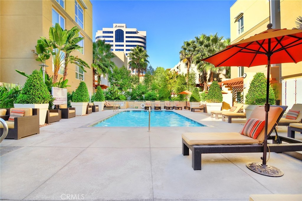 A modern full service luxury building built in 2010, welcome to the ASCENT at Warner Center! This is the unit everyone has been waiting for; an extremely rare 1 bedroom on the TOP FLOOR!!!!!! No neighbors above you AND a corner unit! Immaculate 1 bedroom / 1 bathroom showcasing a fabulous open floor plan with modern HARDWOOD flooring. Spacious cooks kitchen w/Stainless Steel appliances, custom Maple cabinetry & Granite counters. From the living area, inspiring views of the kitchen & outdoors prevail, with access to your private terrace overlooking a courtyard. The master bedroom is generous in size & comes equipped with a HUGE walk-in closet & luxurious en-suite bath featuring double vanity sinks & Granite counter tops. Full size in unit WASHER & DRYER, plenty of storage, recessed lighting + central heat & air are only a few of the amenities you'll enjoy living here. This unit also comes with 2 reserved parking spaces in the secured garage, near the elevator for convenient access. In addition, there's plenty of guest parking and even offers electric vehicle charging stations! The complex itself features a plethora of amenities: Pool, spa, fitness center, club house w/kitchen, game room, entertainment lounge w/flat panel television, outside barbecues, fire places, dog park, etc! All this located in the heart of Warner Center mere walking distance to The Village, Westfield Topanga Mall, Warner Center Park & Westfield's newest upcoming project "LA Warner Center."