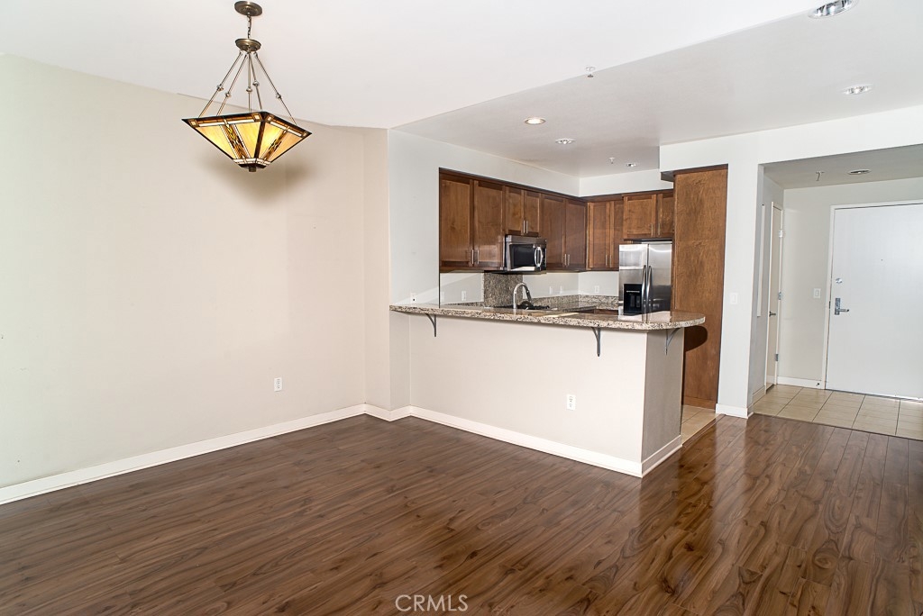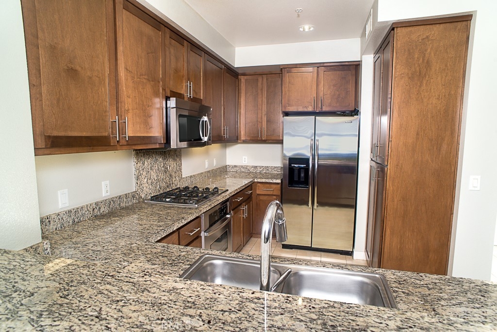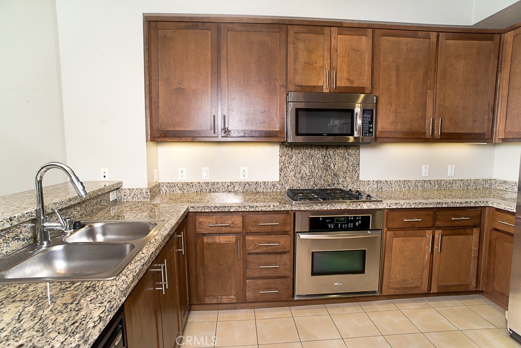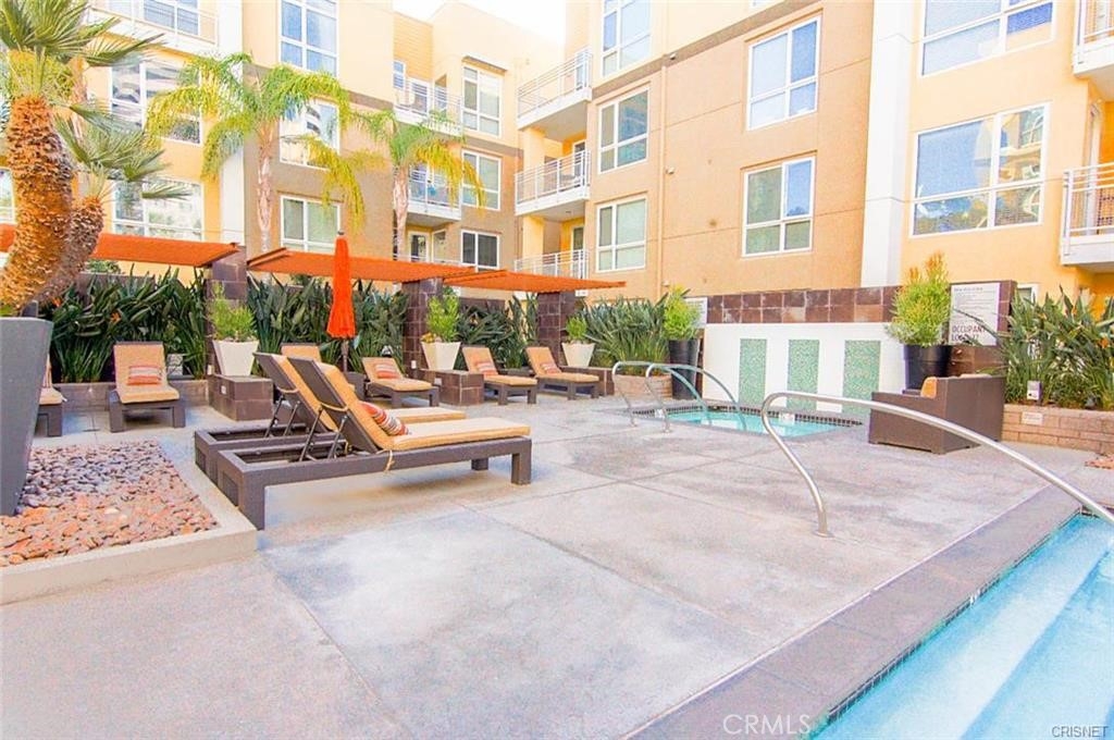 BACK ON MARKET AND REDUCED! FANTASTIC OPPORTUNITY ON THIS TWO BEDROOM TWO FULL BATH CONDO LOCATED IN THE DESIRABLE AND LUXURIOUS RESORT-STYLE COMMUNITY, ASCENT AT WARNER CENTER! SITUATED ON THE SOUGHT AFTER FIFTH FLOOR (TOP FLOOR) END UNIT, NO ONE ABOVE YOU AND NO ONE TO ONE SIDE, ONE COMMON WALL. THIS SOUTH FACING UNIT WITH HIGH CEILINGS AND DUAL PANE WINDOWS AND DOOR(S) WITH NATURAL LIGHT KEEPING IT BRIGHT AND LIGHT THROUGHOUT. MODERN OPEN KITCHEN WITH STAINLESS STEEL APPLIANCES, GRANITE COUNTER-TOPS, WOOD CABINETRY, TILE FLOORS AND RECESSED LIGHTING OPENS TO LIVING ROOM CREATING A GREAT ROOM WITH DINING AREA SEPARATE LIVING ROOM AREA AND BALCONY WITH GREAT VIEWS. THE LARGER MASTER BEDROOM INCLUDES A WALK-IN CLOSET, CEILING FAN AND EN SUITE MASTER BATH WITH DUAL VANITY SINK(S) WITH GRANITE COUNTER-TOP AND LARGE WALK-IN ENCLOSED TUB/SHOWER. SECOND BEDROOM WITH MIRRORED WARDROBE AND FULL BATH OFF HALLWAY WITH GRANITE COUNTER-TOP AND ENCLOSED TUB/SHOWER. TWO ASSIGNED GATED COVERED PARKING SPACES, ON-SITE GUEST PARKING AND HIGH SPEED ELECTRONIC VEHICLE CHARGING STATION(S). THE COMMUNITY ALSO FEATURES A GORGEOUS RESORT-STYLE POOL AND SPA AREA, LUSH MANICURED GROUNDS WITH LOUNGING AREAS, BBQ GRILLS, FIREPLACE(S). SEPARATE FULL SIZED STATE-OF-THE-ART FITNESS CENTER, CLUB HOUSE WITH GAME/POOL ROOM, ENTERTAINMENT LOUNGE AND FULL SIZED KITCHEN AND DINING. CLOSE TO THE VILLAGE, FINE SHOPS AND RESTAURANTS, ENTERTAINMENT, WARNER CENTER PARK AND PUBLIC TRANSPORTATION.