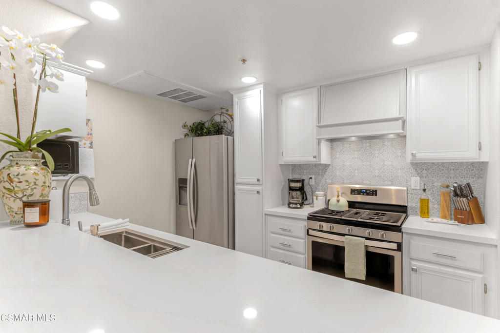 Welcome to your dream home at 5200 Premiere Hills Circle #127, nestled in the prestigious Bella Montagna complex in Woodland Hills, CA. This completely remodeled 1-bedroom, 1-bath condo offers 859 square feet of elegant living space, blending modern convenience with sophisticated style.Step inside and be greeted by the inviting ambiance of custom neutral designer paint colors. The large primary suite is a sanctuary of comfort, featuring custom built-in closet shelving. Relax in the beautifully appointed bathroom, featuring quartz countertop vanity, and a shower over tub offers the perfect retreat after a long day.The heart of this home is the stunning kitchen, designed for both functionality and style. Enjoy cooking in a space adorned with quartz countertops, a beautiful custom tile backsplash, and top-of-the-line stainless steel appliances, including an oven and gas stove. The adjacent dining area makes it easy to entertain guests or enjoy intimate meals at home.Convenience meets style with an indoor laundry space located downstairs, adding to the practicality of this charming condo. The single car garage has been creatively converted into a custom office space, perfect for those working from home or in need of a quiet retreat for projects.Living in the Bella Montagna gated community means access to an array of amenities designed to enhance your lifestyle. Take advantage of the clubhouse for gatherings, unwind by the sparkling pool, relax in the soothing spa or working out in the gym. The complex is ideally located near great shopping and restaurants, providing endless opportunities for dining and entertainment.Positioned near a beautiful park, this premier location offers the best of Woodland Hills living. Don't miss the chance to make this exceptional condo your new home. Experience the perfect blend of luxury and convenience in the heart of Bella Montagna. Nearby restaurants and grocery stores make it super convenient.