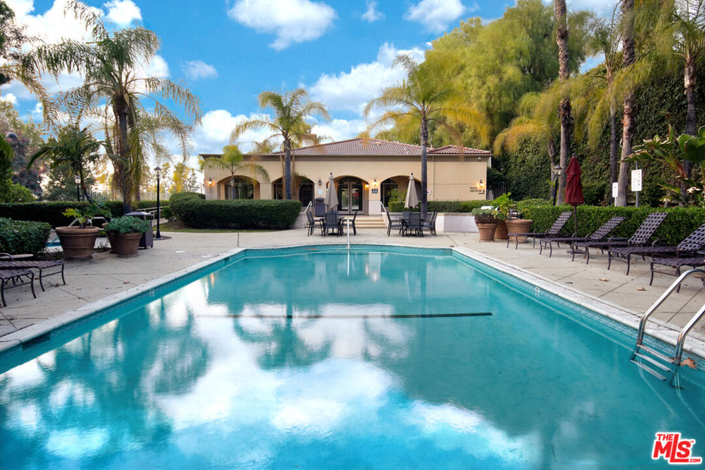 Exquisite Townhome in the Prestigious Bella Montagna CommunityWelcome to this exquisite 2-bedroom, 2.5-bathroom townhome, nestled within the highly sought-after gated Bella Montagna community in Woodland Hills, CA. Located south of the Boulevard, this elegant residence offers privacy, security, and an unbeatable location!Step inside and be captivated by the spacious, light-filled layout, featuring high ceilings and an open-concept living area. The inviting living room boasts a cozy fireplace and a private balcony, where you can take in breathtaking mountain views. The large kitchen is equipped with stainless steel appliances, and the adjacent dining area makes it easy to entertain guests or enjoy intimate meals at home. Upstairs, you'll discover two luxurious primary suites, each featuring walk-in closets, soaring vaulted ceilings, and en-suite bathrooms, providing the perfect private retreat with views from every room. The home also offers a convenient in-unit laundry area, a two-car tandem attached garage just steps away, and an additional parking area with space for two more cars for homeowners. Enjoy resort-style amenities, including a clubhouse, sparkling pool, rejuvenating spa, fully equipped gym, basketball court, and BBQ areas. The beautifully maintained community also offers lush green spaces and nearby dog-walking trails, ideal for an active lifestyle, as well as a large parking area for guests. Situated in a peaceful rear complex location, this townhome provides a serene and quiet living environment while remaining close to the vibrant heart of Woodland Hills. Just moments from Ventura Blvd's top restaurants, Whole Foods, and boutique shopping, with easy access to freeways, Warner Center, The Village, and top-rated schools. This home is the perfect blend of luxury, convenience, and tranquility.