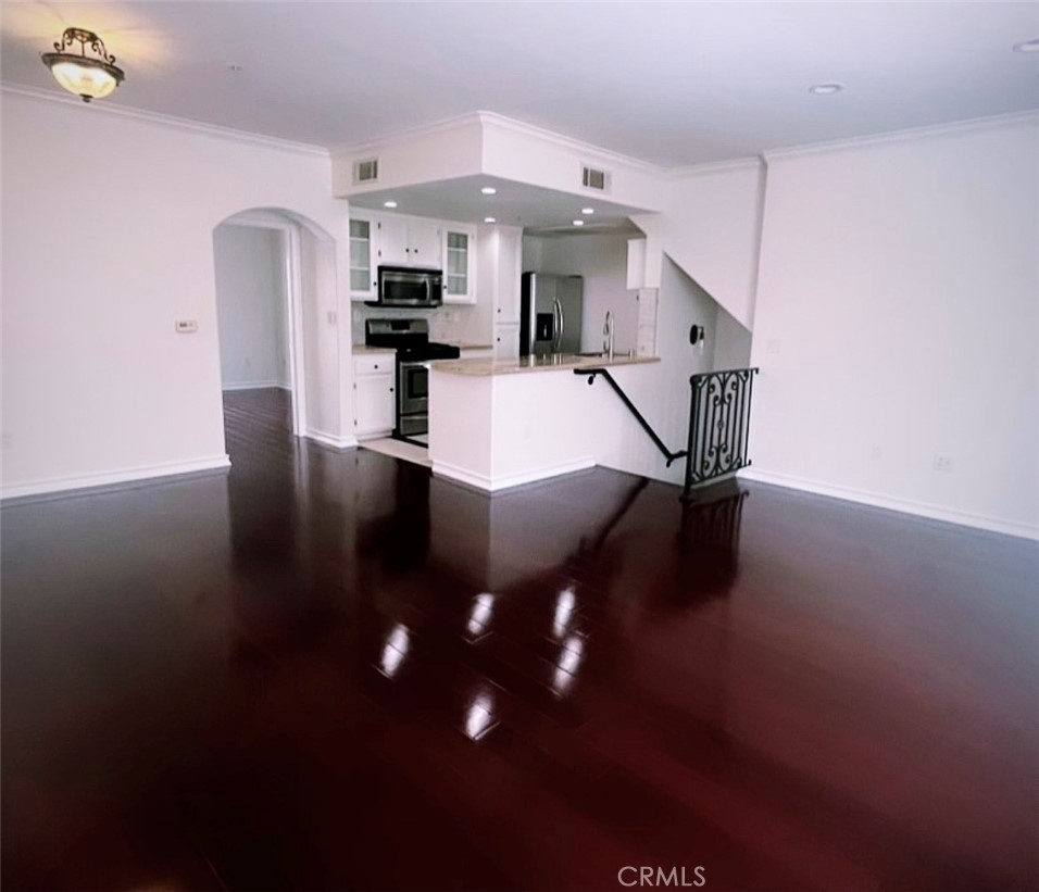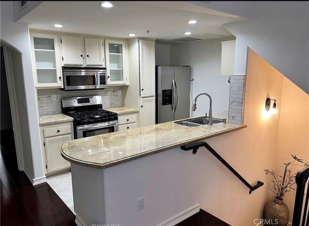 Located South of the Boulevard in Woodland Hills within a prestigious gated community. This exquisite townhome offers a charming 1-bedroom, 1-bath townhome bathed in natural light, offering a welcoming retreat. An open floor plan featuring new energy-saving windows, custom plantation shutters, and tiger mahogany hardwood floors throughout. The kitchen showcases beautiful cabinets, stainless-steel appliances and marble countertops. Convenient in-unit laundry with a washer and dryer located next to the laundry closet downstairs. Enjoy private parking in the garage with additional guest parking within the community. Expand your living experience with a variety of amenities, including a revitalizing pool, spa, gym for staying active, basketball court ideal for engaging in dynamic and lively games and nearby dog walking trails, offering a delightful and diverse experience. Nestled amidst multi-million-dollar homes. This residence is conveniently located within walking distance of shopping on Ventura Blvd. Furthermore, with the upcoming arrival of the new RAMS stadium in town.