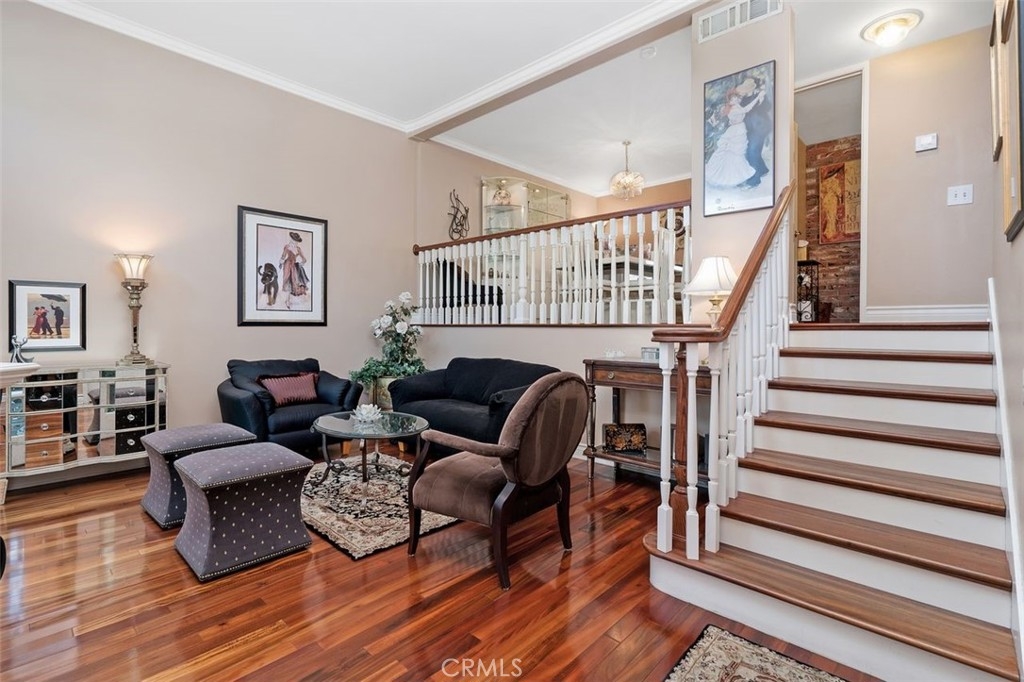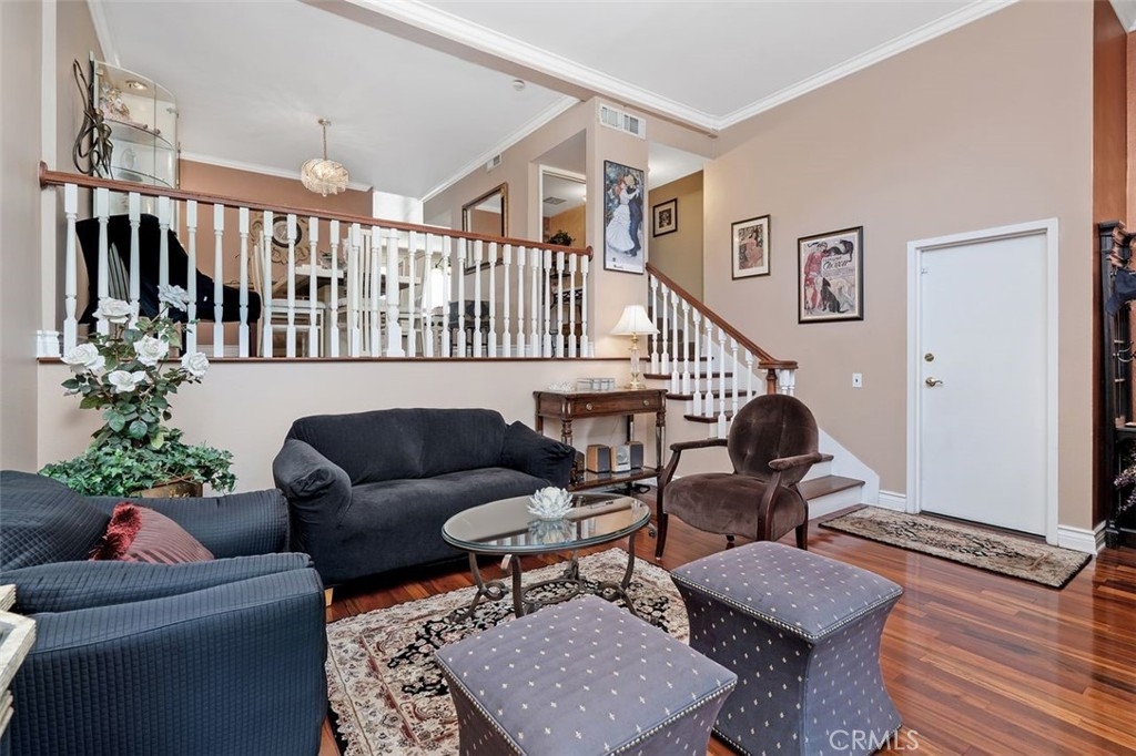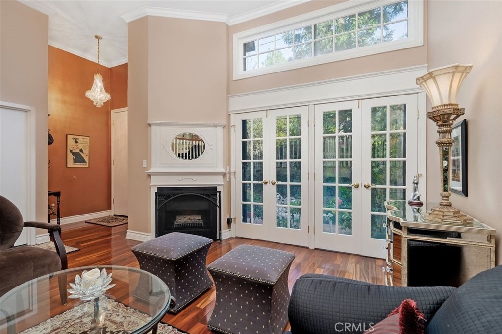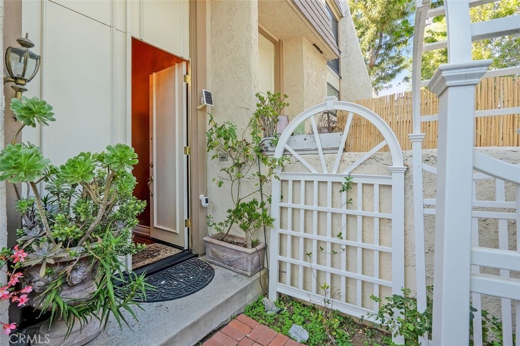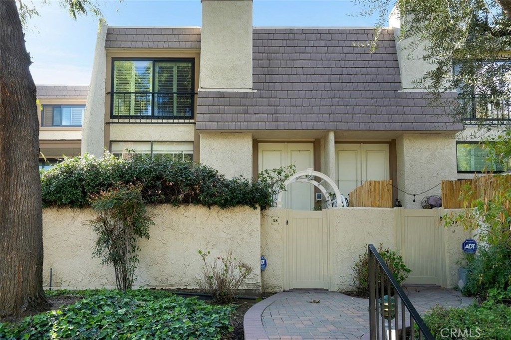 Gorgeous, Charming Townhouse featuring 2 bedrooms, open space Den/Office/Third Bedroom, and 2 1/2 Baths. Magnificent upgrades in the sought-after Dove Creek Community. Double doors lead into an open floor plan entry with beautifully figured hardwood floors and 12-foot high ceiling. Custom French doors bring plenty of light to an Elegant living room with gas fireplace. Large formal dining area with custom wood staircase and railing overlooks the living room, graced by Swarovski crystal chandeliers, perfect for entertaining! Also featured, a custom-themed powder room. A beautiful kitchen with a large dinette area, Island, pantry with pull-out drawers and corner cabinets. Granite counter tops, Large Refrigerator, Free Standing Gas Range and Brand New Dishwasher all color-coordinated to complement hand-glazed cabinetry. A spacious master suite features a custom, room-sized Walk-In-Closet, new Ensuite Master Bathroom with custom Shower and Sky Light, custom vanity, double sink and quartz countertop. A second Bedroom, open space Den or Office, and custom full bath with tub complete the third level. Central Heating/Air. New Roof installed 2019. Resort style living surrounded by lush landscaped grounds, heated community pool, two spas, two tennis courts. Attached 2 car garage with direct access/laundry area and washer/dryer Hookups. Walking distance to ''The Village'', fine dining & shopping at Westfield Topanga mall, short mile to the 101 freeway and much more makes this home a must-see!