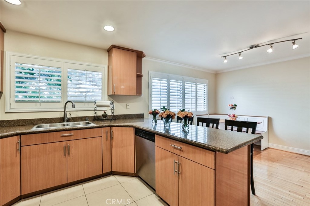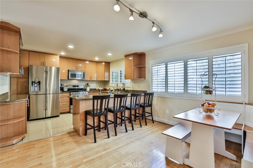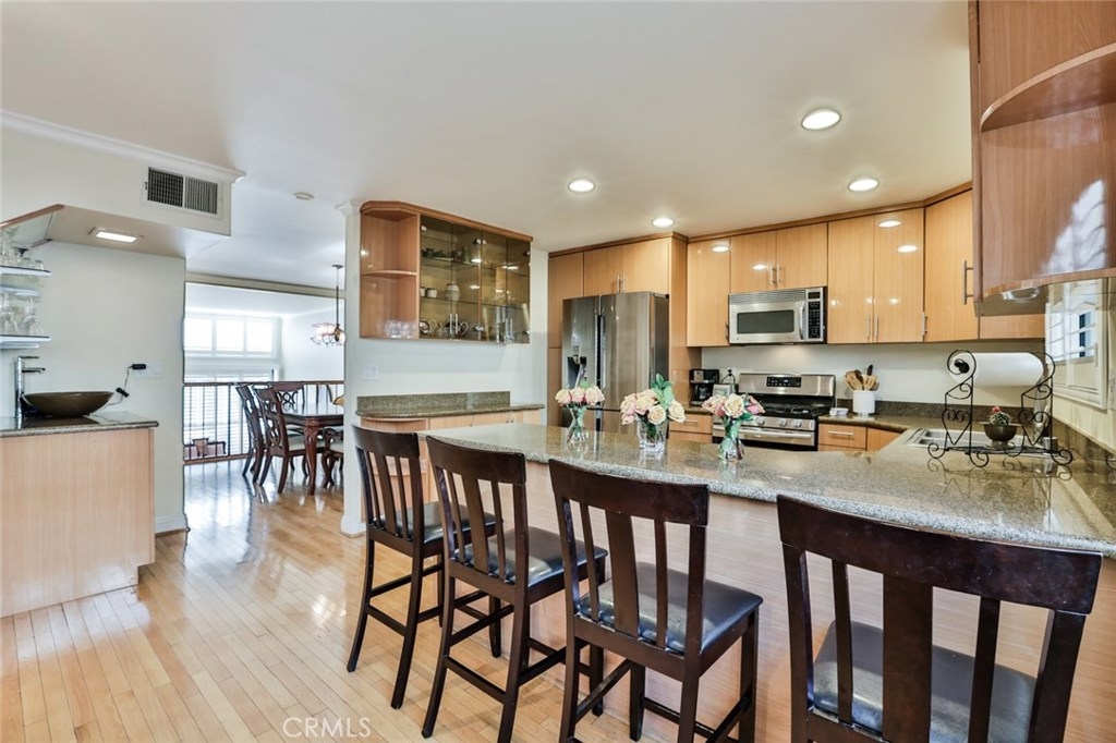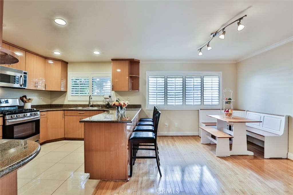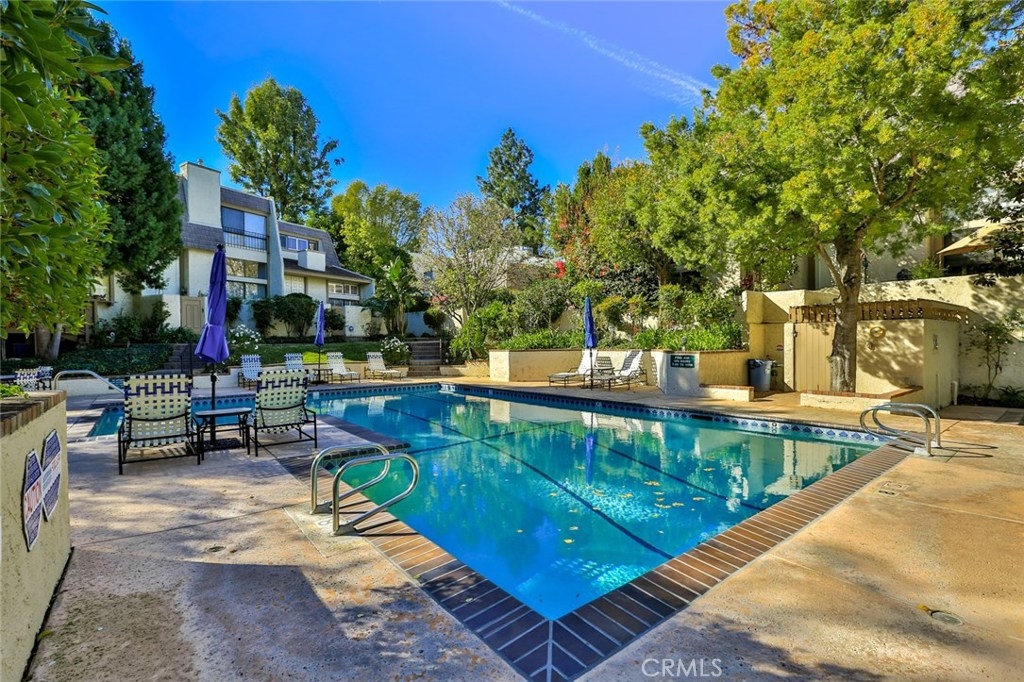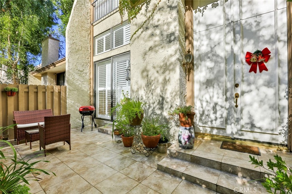 Gorgeous Townhouse featuring 3 bedrooms and 3 bathrooms in Beautiful Dove Creek Community (Virtual Tour Google Above). Tucked away from the street in a peaceful location of this resort style complex, Cozy front porch patio garden that leads you into the double door entry with open floor plan, vaulted ceilings, loads of windows to bring in plenty of natural light, Elegant living room with gas fireplace. Large formal dining area with wrought iron railing overlooking the family room area which is perfect for entertaining family and friends! Remodeled kitchen with a large sitting area, custom cabinets, pull out drawers and lazy Susan, pantry, granite counter tops, Beautiful Breakfast Nook Bench, Samsung CHEFF COLLECTION Refrigerator, Samsung Free Standing Gas Range, All stainless-steel appliances. Beautiful, wood flooring and newly installed plantation shutters throughout. Upstairs, spacious oversized master bedroom with sitting area and private master bath and two closets. Two more nicely sized bedrooms & hallway full-bath with tub. central heating and air. New Roof installed 2018. Enjoy resort style living surrounded by lush landscaped grounds, heated year around community pool and two spas, two tennis courts. Attached 2 car garage with direct access and laundry area with washer and dryer. Conveniently located with walking distance to ''The Village'', fine dining & shopping, the mall and Warner Center Park and so much more makes this home a must see! close to the 101 freeway.