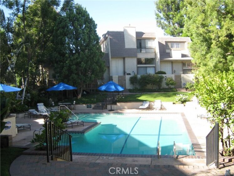 Reduced, outstanding opportunity. Check the price and square footage. Ready to go!! Sought after resort style living at desirable Dove Creek. Here it is great value, 3 Br.+3 baths. Gleaming wood floors at living area, LR,DR,FR and kitchen. This floor plan has 1700 sq.ft. and offers split level living at it's best. Kitchen opens to adjacent family room. Enjoy dining with family or friends in the formal dinning room. Living room features cathedral ceilings, fireplace and slider to private, inviting enclosed brick patio. Dinning room overlooks living room offering an open spacious look. This light, bright unit offers crown molding at living areas, some recessed lights and some tree top views. Oversize en suite master with mirrored closet doors has room for sitting area. Direct access to double attached garage with laundry area and cabinets. Lush green mature landscape through out this unique resort type complex with pool, 2 spas and 2 tennis courts. This home is in the heart of Woodland Hills, convenient location to The Village with world class dinning and shopping, Enjoy the newly renovated Woodland Hills park, sport fields, pool and meeting buildings. Don't miss this opportunity to call this home.
