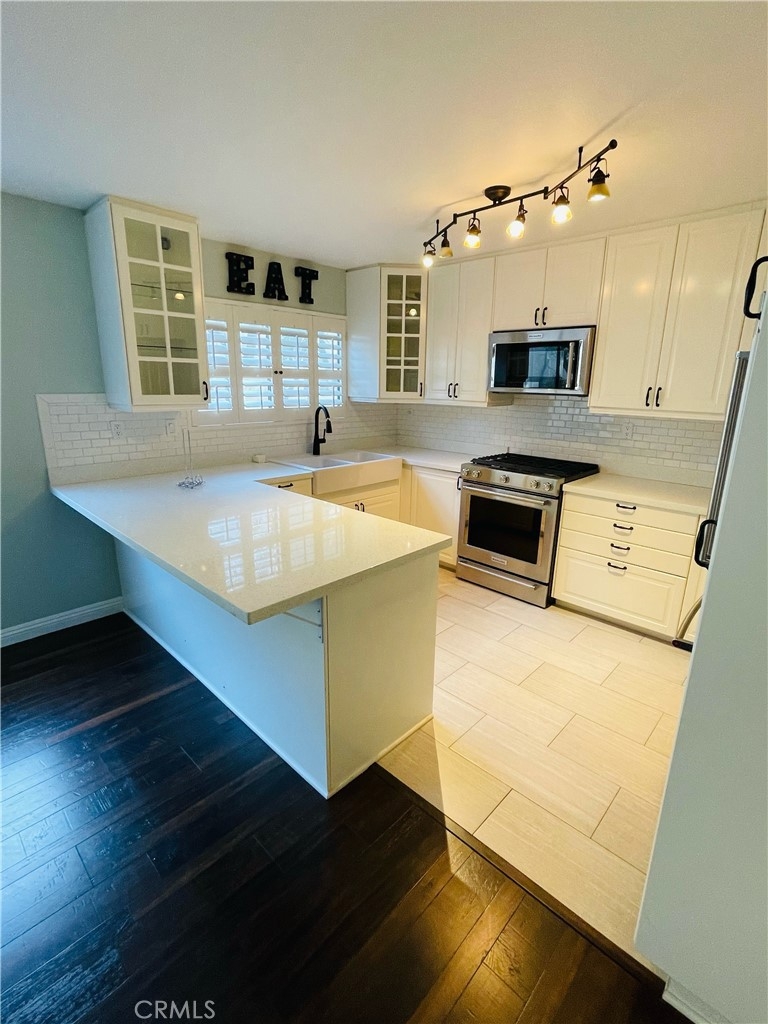UPDATED BEAUTIFUL 3BR 2.5BATH TOWNHOME IN THE HEART OF WOODLAND HILLS. BLOCKS AWAY FROM HIGH END SHOPPING, RESTAURANTS AND PARKS. LOCATED IN THE RESORT STYLE DOVE CREEK COMPLEX, THIS COMPLETELY RENOVATED UNIT FEATURES A DOUBLE DOOR ENTRY WHICH OPENS TO SPACIOUS LIVING ROOM WITH FIREPLACE, HIGH CEILINGS AND BEAUTIFUL HIGH QUALITY DARK LAMINATE FLOORS THROUGHOUT, 3 BEDROOMS, 2.5 BATHROOMS, SEPARATE DINING ROOM WITH WET BAR, NEWLY RENOVATED KITCHEN WITH NATURAL LIGHT, QUARTZ COUNTERTOPS AND NAME-BRAND STAINLESS STEEL APPLIANCES. PRIVATE PATIO HAS BEEN FURNISHED WITH ARTIFICIAL GRASS AS WELL. STREET FACING WINDOWS AND DOORS WERE REPLACED IN 2018 WITH DOUBLE PANED GLASS FILLED WITH ARGON GAS TO MINIMIZE ANY STREET NOISE. THE UPPER LEVEL WAS RENOVATED IN 2019 TO ENCLOSE THE LOFT AREA CREATING AN ADDITIONAL BEDROOM SPACE ALONG WITH THE ADDITION OF ENORMOUS DUAL HIS & HERS CLOSETS WITH ORGANIZATION SYSTEMS IN THE MASTER BEDROOM UNIT ALSO HAS ATTACHED 2 CAR GARAGE WITH SHELVING UNITS, WASHER/DRYER HOOKUPS AND WIFI ENABLED GARAGE DOOR OPENER. THIS COMPLEX HAS FANTASTIC AMENITIES, LUSH GREEN LANDSCAPED THROUGHOUT WITH POOL, 2 SPAS, 2 TENNIS COURTS CLOSE TO WESTFIELD MALL AND VILLAGE, 101 FREEWAY AND RESTAURANTS.