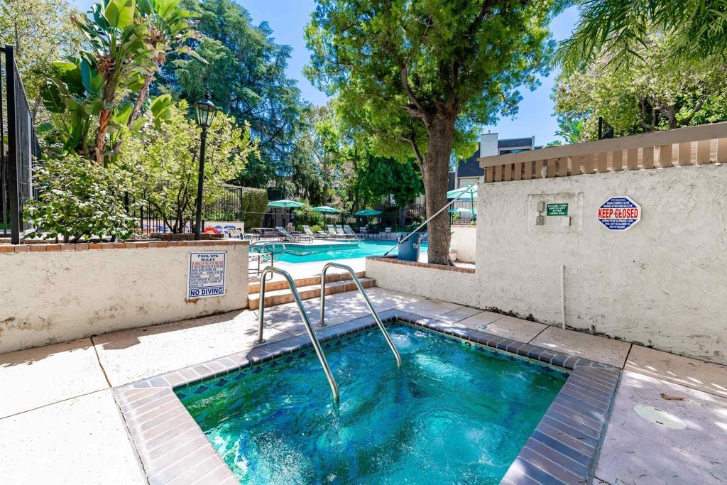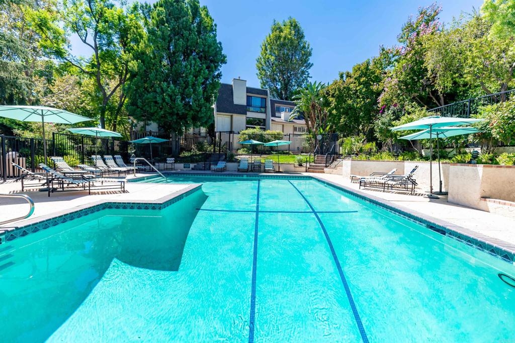 Welcome to Dove Creek Townhomes, a stylish, spacious retreat in the heart of Woodland Hills. This spacious 2-bedroom, 2-bathroom residence offers 1,243 sq ft built in 1975, offering a comfortable living with soaring vaulted ceilings, abundant natural light, and a flowing open layout. An end-unit, it only shares one wall with neighbors. The inviting living room connects seamlessly to the dining area and private patio, creating an ideal space for both everyday living and entertaining. The updated kitchen features modern finishes and ample cabinet space, perfect for the home chef. Upstairs, the primary suite offers generous closet space, while the second bedroom provides flexibility as a guest room or home office. In-unit laundry and an attached two-car garage for your convenience. Community resort-style amenities include lush greenbelts, heated pool, spas and hot tub, and multiple tennis courts. Quiet, park-like vibe with well-kept grounds. Conveniently located near The Village at Topanga, Costco, dining, shopping, and easy access to the 101 freeway, this home combines comfort, style, and convenience in one great package.