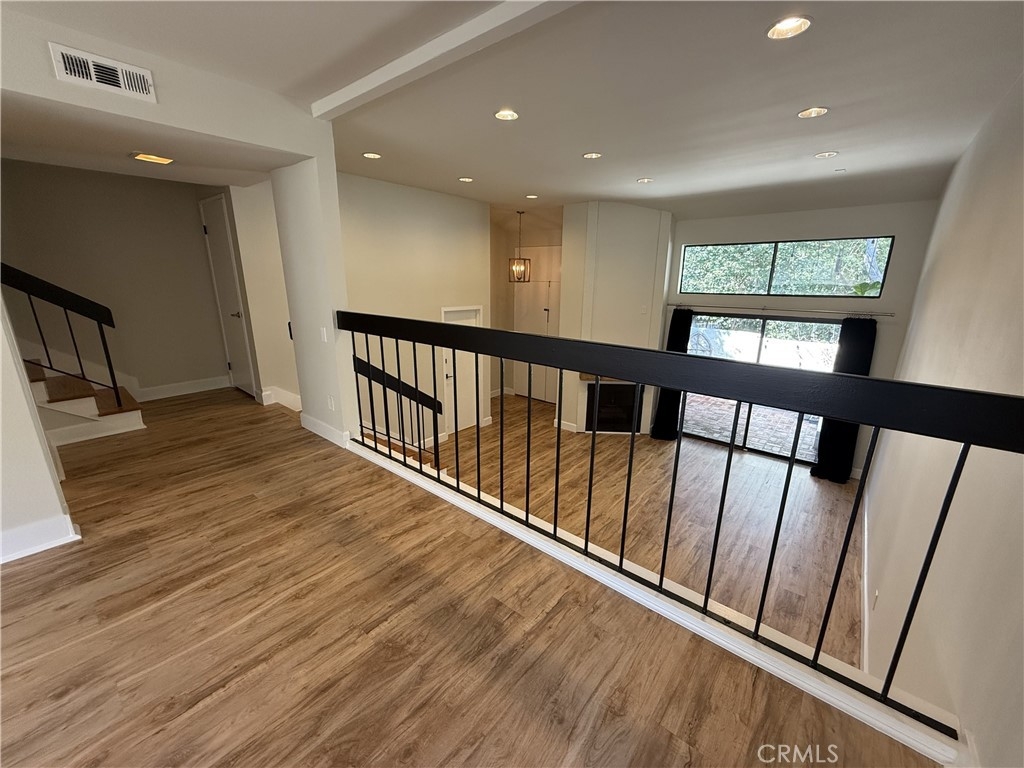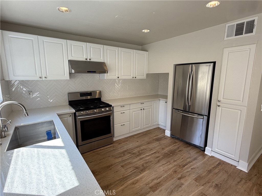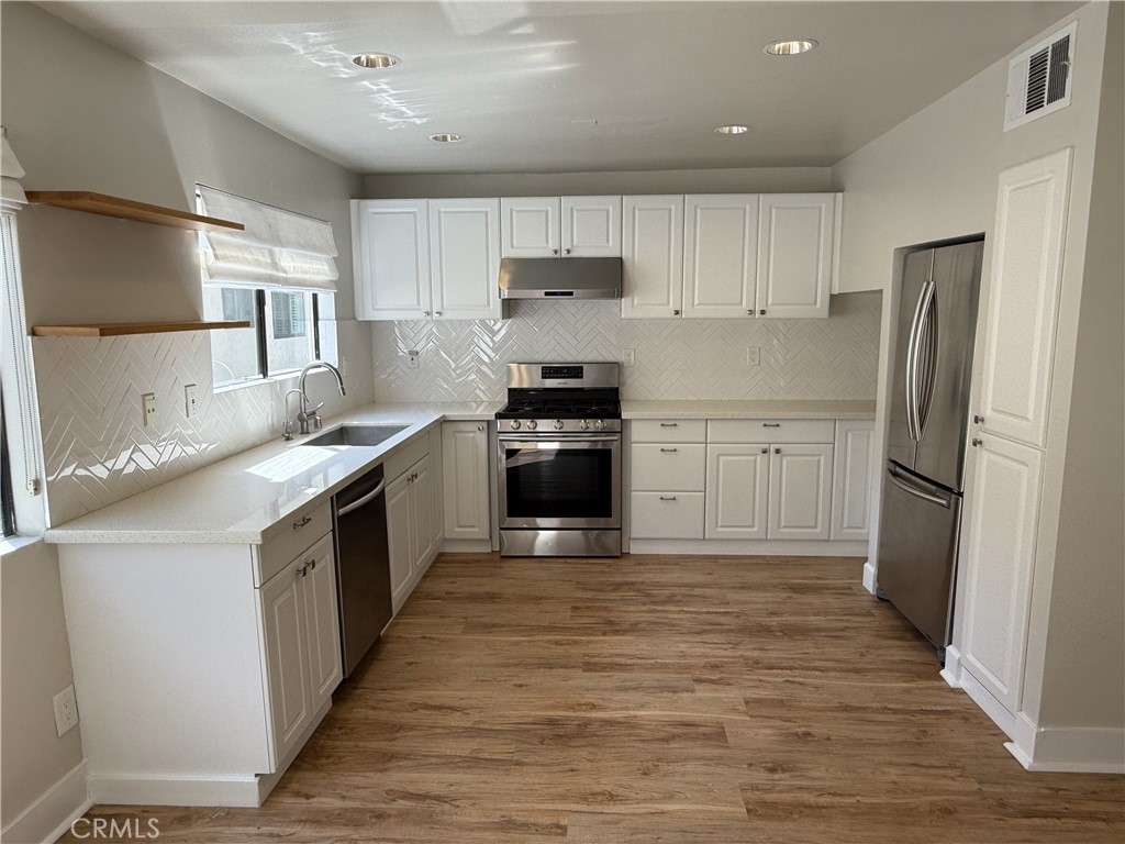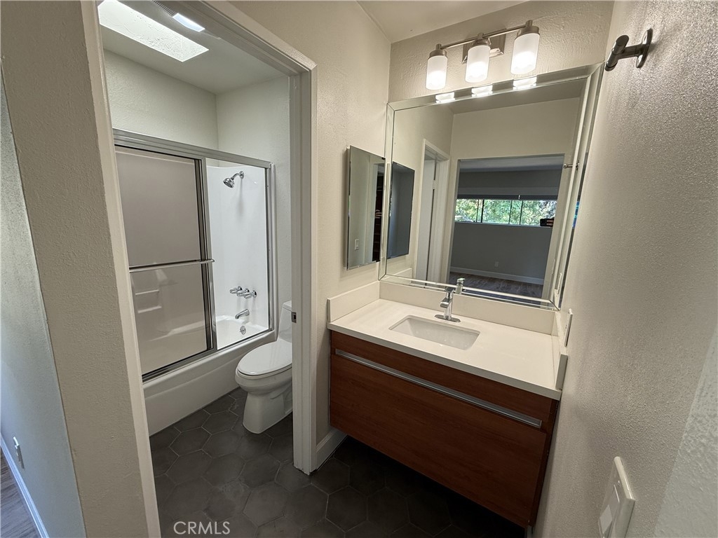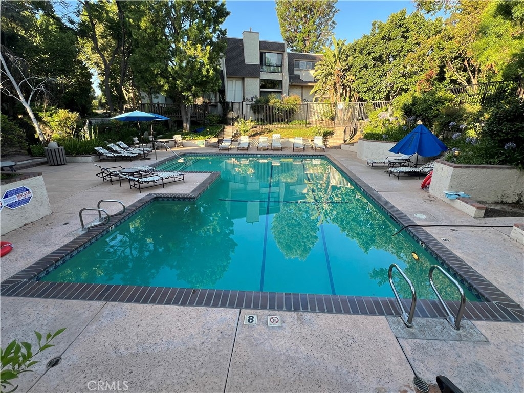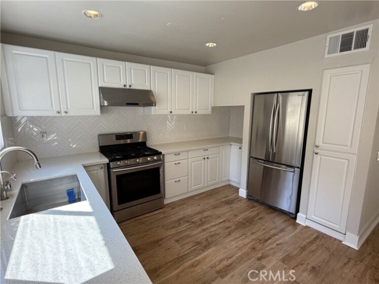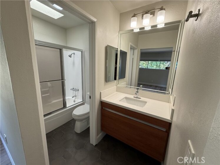 As you step inside, you’ll be greeted by a bright living room featuring soaring high ceilings, recessed lighting, and a cozy fireplace, perfect for gatherings or quiet evenings at home. The unit has been thoughtfully refurbished, showcasing a modern kitchen with elegant new cabinets, stunning quartz countertops, and stainless-steel appliances, all enhanced by recessed lighting. Retreat to the large primary bedroom, complete with an en suite bath and a generous closet featuring custom cabinetry. The spacious secondary bedroom also includes its own en suite bath, providing comfort and privacy for family or guests. A convenient half bath is located on the main floor for visitors. Freshly painted throughout and with an upgraded electrical panel, this home is ready for you to move in. The HOA fees cover insurance, earthquake insurance, and water, offering peace of mind and convenience. Located within walking distance of Warner Center, Topanga Mall, and The Village, you’ll have an array of restaurants, shopping, and nightlife at your fingertips. Direct access to 2-car garage with laundry area. Don’t miss the opportunity to make this inviting home your own