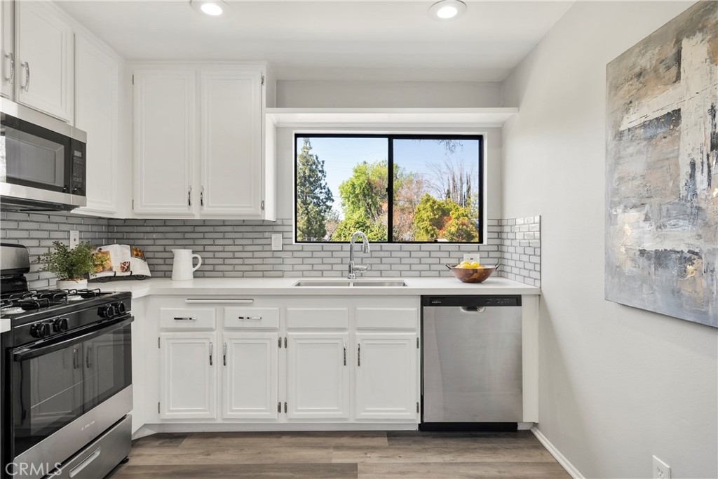 Step into this beautifully remodeled two-bedroom, two-bathroom condo in the heart of Woodland Hills—where modern luxury meets convenience. Ideally located near the pool, this home boasts an optimal position with scenic views and easy access to community amenities. The heart of this condo is the fully renovated kitchen, equipped with sleek countertops, modern appliances, and stylish finishes. The open floor plan flows seamlessly from the inviting living room into the dining area and kitchen, creating an ideal space for entertaining or relaxing. Both bathrooms have been meticulously upgraded with contemporary vanities and high-end finishes. The oversized primary suite is a true retreat, offering ample space and comfort. Fully furnished with stylish staging, this home is move-in ready, providing a turnkey opportunity for the discerning buyer. Located just minutes from Topanga Village, the 134 Freeway, and a variety of upscale restaurants, this condo offers the perfect blend of luxury living and convenience. Whether you're starting out or looking for an upgrade, this home is a dream come true.