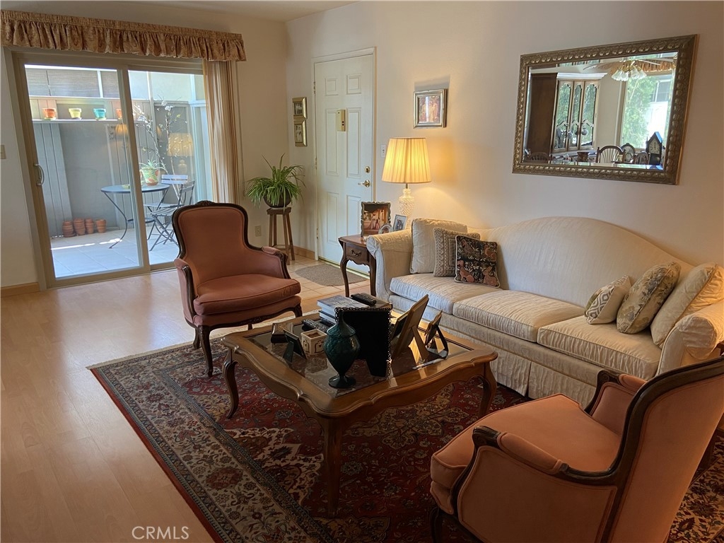 It's a #10! Corner unit with covered patio. Open and Bright. Two bedrooms (one with walk-in closet), one full updated bath. Welcoming living room and dining area with sliding door leading to partially covered patio for added dining area and soaking up the morning sun. Laminated flooring in all living areas. Tile floors in kitchen and bath and at entry. All white kitchen with tile counter tops and appliances make it a showcase. Great views looking east out the kitchen window while preparing breakfast in the morning. gated community is on 8.5 acres of lush landscaping...lots of trees and greenery, walkways, flowers. Two swimming pools, kiddies pool, play yard, sports court, putting green and community center with full kitchen. In the heart of Woodland Hills, close to The Village, Warner Center Park, fine restaurants, Kaiser/UCLA Medical and Topanga Canyon hiking trails and on to Malibu. A great place to call home.... It is a co-op.