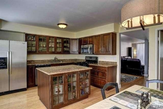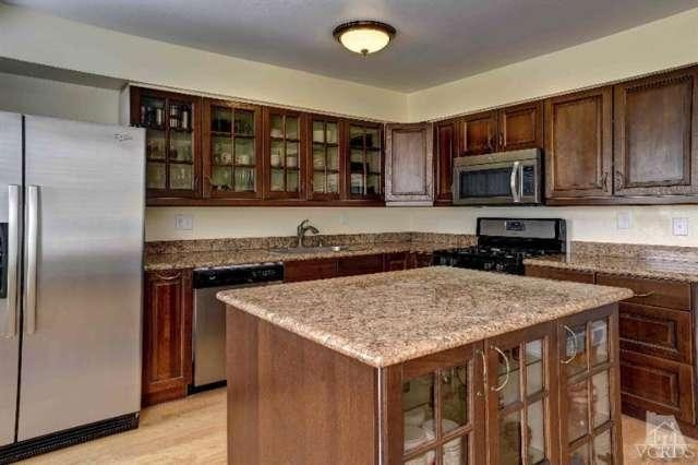 Desirable Corner Unit Condo Centrally Located in Woodland Hills! Spacious Home Doesn't Feel Like a Condo as it Shares Only One Wall with No One Above or Below. 3 Bedrooms / 2.5 Bathrooms with Open Floorplan and Fresh Feel as Abundant Light Flows Throughout Living Area. Sharp Kitchen with Granite Counters, Stainless Steel Appliances, and Large Island that Opens to Dining Area or Possible Family Room. Living Room with Beautiful Upgraded Fireplace and Sliding Door that Leads to the Cozy Patio. All Bedrooms Located Upstairs Including Master Bedroom with Walk In Closet and it's own Bath with Granite Counters. Secondary Upstairs Bathroom with New Vanity and Tasteful Tiled Backsplash. Laundry Area Also on Second Floor. All This Within a Wonderfully Maintained Gated Complex with Pool, Jacuzzi, Underground Parking Structure and 24hr. Closed Circuit Surveillance. Close to Schools, Shopping, Dining and Park. Located in back of complex.