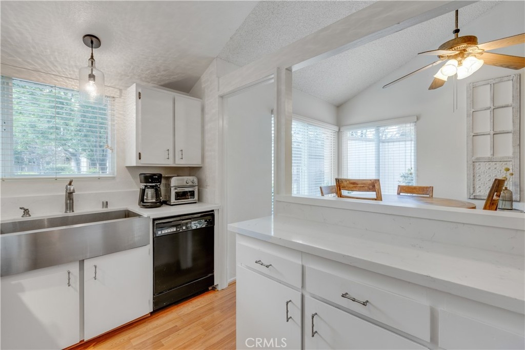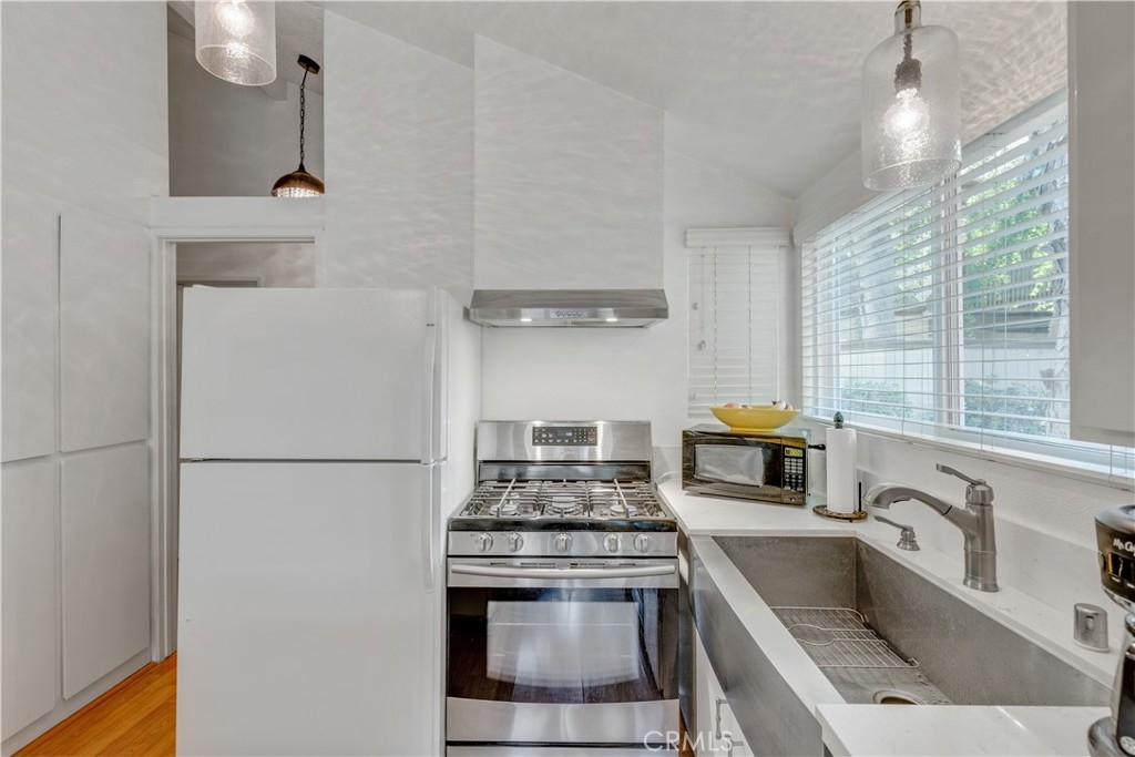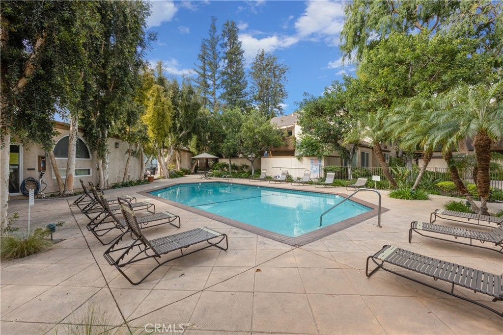 If you haven't seen the gated community of Sequoia Village in prime Woodland Hills, it is close to the heart of Warner Center and all of the shopping, restaurants, and other upscale amenities. You are in for a treat. This ground-floor, quiet two bedroom, two bath condominium is surrounded by mature Sequoia trees and verdant landscaping with pathways leading you to the pool, spa, and tennis court. As you enter this home, you will notice soaring ceilings in the living room and upgrades that include dual paned windows, and in the kitchen, quartz counters, with newer stainless-steel gas range, dishwasher and deep farmer's sink! There is a lot of cabinet space in this kitchen too. The refrigerator and inside washer and dryer are included. There is a gas fireplace in the living room, sliding glass doors leading to your own private patio, and a lovely dining area surrounded by windows. There are two good-sized closets in the primary suite, one with mirrored closet doors. The primary suite has its own full bath and there is a hall shower- bath. This end-unit is steps away from your dedicated side-by-side two-car covered parking spaces number 69 and 70 in the carport with your driving-in access through an electric gate. This complex has sixty units, is professionally managed, and has earthquake insurance for the complex. Your dues also include all water. Located in this desirable neighborhood for an unbelievable price opportunity.