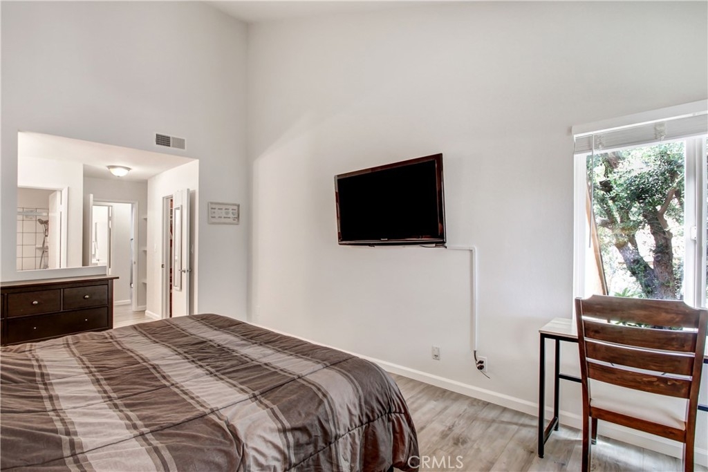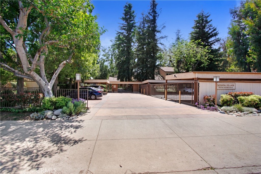 LOCATION! LOCATION! LOCATION! It’s rare that a property in this community comes to market and it won’t last. This pristine property is located in the prime gated community of Sequoia Village. It is centrally located in the highly desired Woodland Hills Area. This second-floor, quiet two-bedroom two-bathroom condo is surrounded by Sequoia trees making for an extremely private setting. The property boasts an array of natural light. Walk into this open floor plan which has many upgrades with new laminate floors and freshly painted throughout. The kitchen has lots of storage and stainless steel appliances. The fireplace is located in the spacious family room which has a double-door slider that leads you to an oversize private balcony. The primary suite has its own full-size bathroom and walk-in closet. Convenient washer and dryer located in the unit which is extremely rare to find. The property has a ton of storage and closet space. The Complex has sixty total units, has earthquake insurance, and is professionally managed. Comes with 2 assigned covered side-by-side parking spaces and plenty of guest parking. The grounds of this community come featuring a pool, spa, tennis court, and beautiful gardens. This growing area is conveniently surrounded by upscale shopping, restaurants, walking distance from the Village Center, and much more. Don’t let this rare find pass you by.