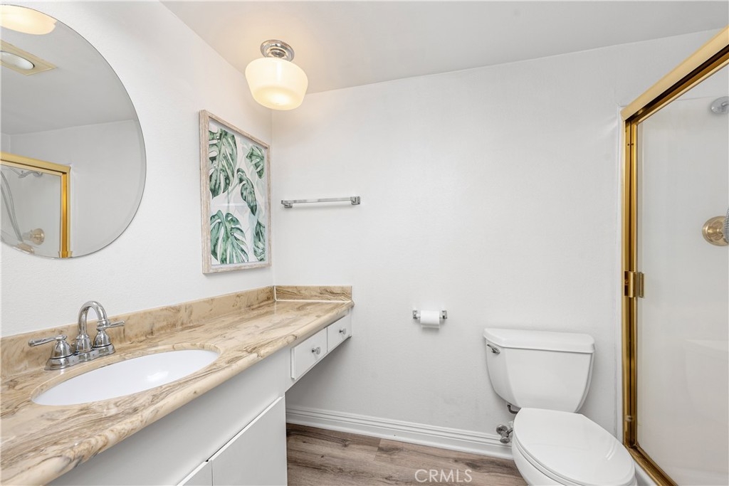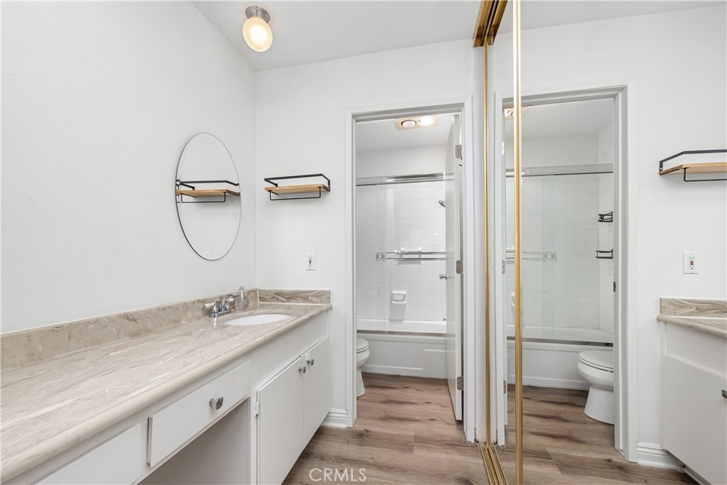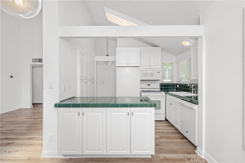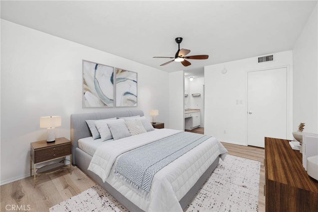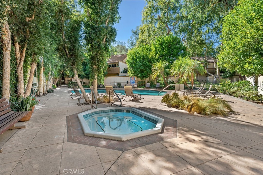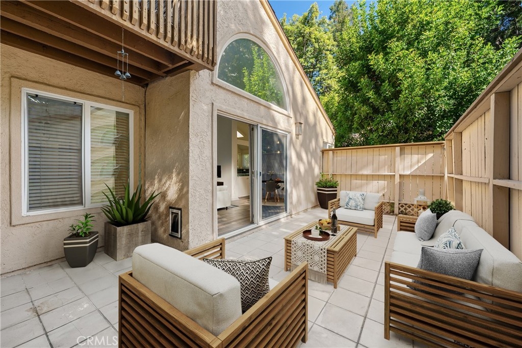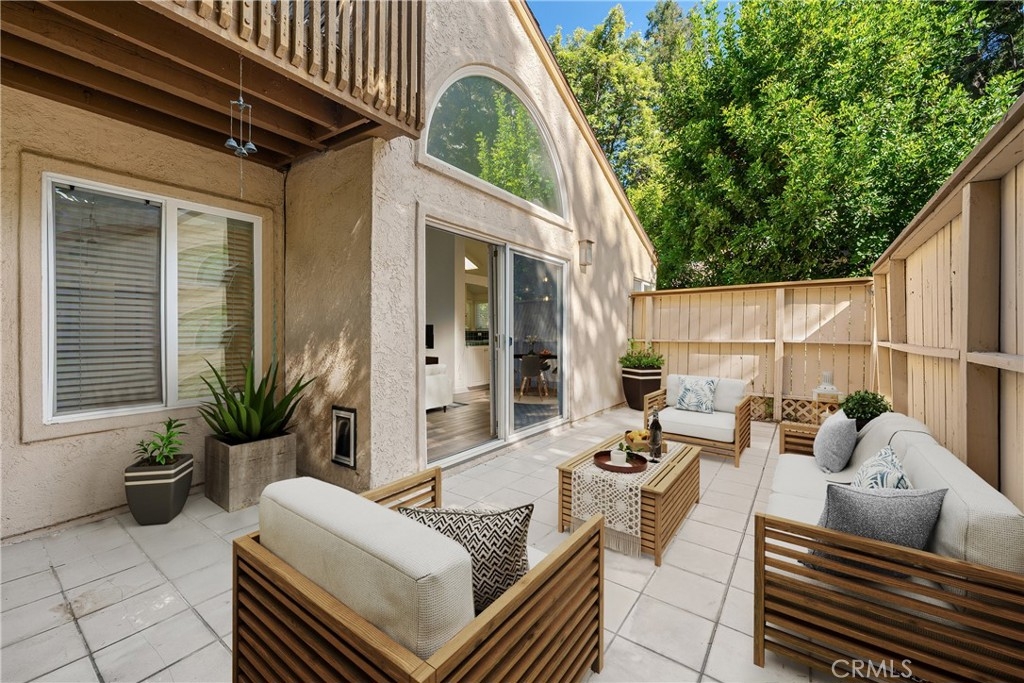 Welcome to this charming home in the gated Sequoia Village community in prime Woodland Hills. The open-concept main living area is highlighted by soaring vaulted ceilings and features a spacious living room, formal dining area and well-equipped kitchen with custom cabinets and ample pantry space. A sliding glass door leads out to a large private patio, perfect for al fresco dining. There are two generously sized bedrooms and two bathrooms, including a primary suite complete with an ensuite bathroom and two large closets. Additional highlights include in-unit laundry, plantation shutters, dual pane windows and two side-by-side covered parking spaces. Unit is located in the center of the complex, which is one of the most desirable locations due to the privacy and tranquility. Community amenities include a resort-style pool/spa, tennis court and beautifully landscaped grounds with dozens of towering Sequoia trees. This property is conveniently located nearby Warner Center, Westfield Topanga mall, Topanga Village, Fallbrook shopping center, the new Rams practice facility, Woodland Hills Rec Center and so much more.