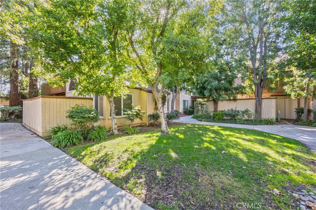 Tucked away in the heart of Sequoia Village, this beautifully updated lower-level two-bedroom condo offers a peaceful, park-like atmosphere. Inside you'll find a spacious living room with soaring vaulted ceilings. The remodeled kitchen features plenty of cabinet space, sleek countertops, a dishwasher, refrigerator, range with a microwave hood, recessed low-voltage lighting, and a convenient lazy Susan corner cabinet. The secondary bathroom is comfortably designed featuring travertine and stone tile flooring, a stylish stall shower with a frameless glass enclosure. High-end chrome bath fixtures, including a hand-held shower spray, add to the modern feel with hardwood floors throughout. The spacious primary bedroom includes two mirrored, lighted wardrobe closets, while the second bedroom, with its double-door entry, is versatile enough to be used as a home office or a den that opens to the main living area. Also included is a full-size washer and dryer, an upgraded electrical panel, newer heating and air conditioning, shaded private patio-perfect for relaxing. The unit also comes with two side-by-side covered parking spaces in a gated carport. Sequoia Village is a well-maintained community offering resort-style amenities, including a pool, gated security. The location is unbeatable—just a short walk to Topanga Plaza, The Village, and the brand-new Rams Training Camp. With easy access to the 101 Freeway and some of the best schools in the Valley, this is an opportunity you don’t want to miss!