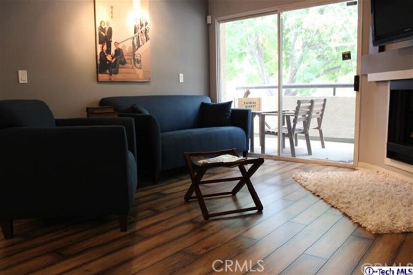 CONTEMPORARY AND CHIC resort style living at The Met in Woodland Hills. 20 minutes from LA, 101 & 405 fwys. Complex includes state of the art gym, tennis courts, resort-feel swimming pools and spas, indoor racquetball court, indoor basketball court, community club house, and 24 hour security. Unit is open concept boasting granite tabletops, dark wooden kitchen cabinets, fireplace, and wooden floors. INCLUDED BONUS WITH THIS UNIT: Contemporary furnishings including living room set, dining room set, bedroom set, patio set, flat screen tv, stove, refridgerator, and additional accessories. ADDITIONAL PERK - One year of active home security system. MOVE-IN READY! WELCOME TO YOUR NEW MODERN HOME OF 2013. OPEN HOUSE SAT & SUNDAY JULY 13 & 14 FROM 12-4PM