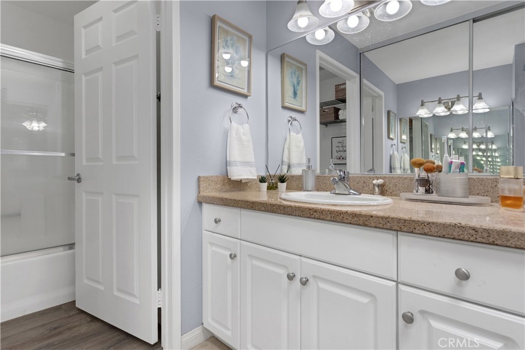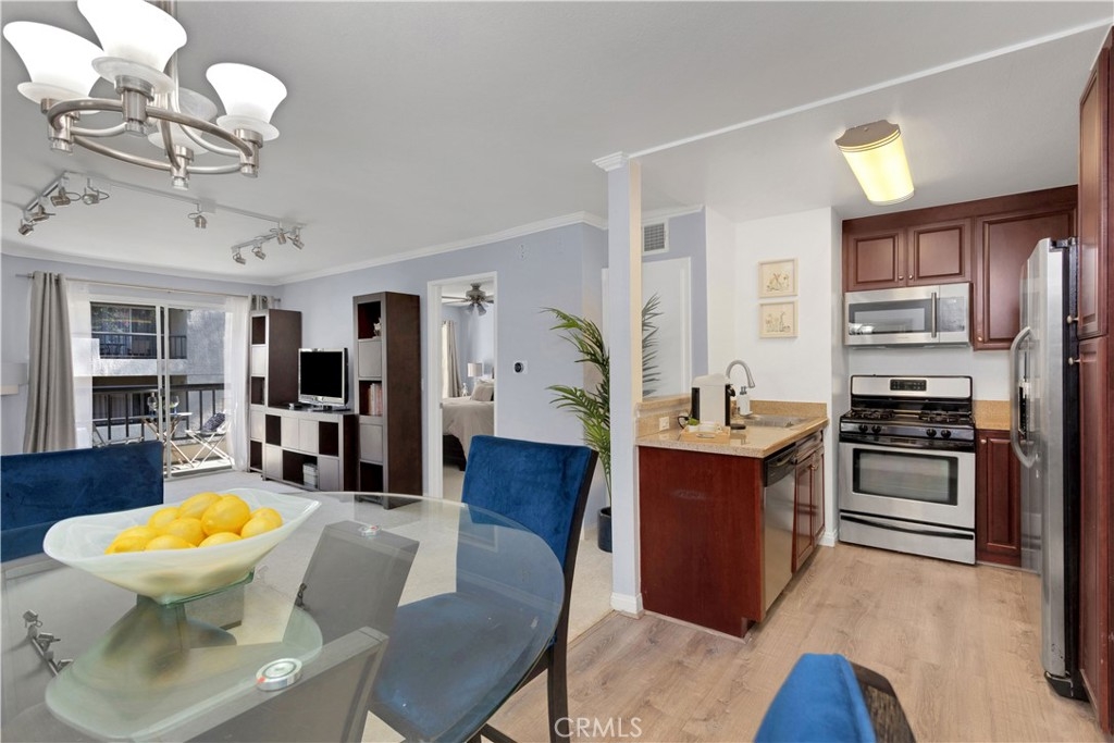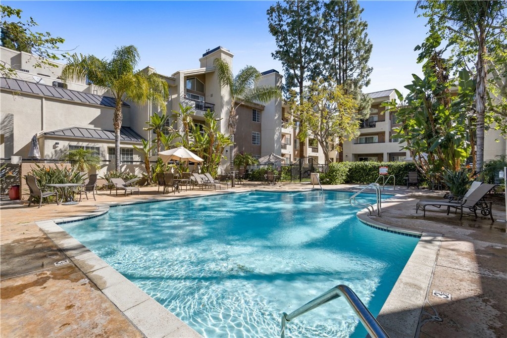 The Met Warner Center offers resort-style living nestled in the heart of Woodland Hills. Conveniently located 1 bedroom, 1 bath condo on the 2nd floor. Luxury open plan with abundant natural light, upgraded and pristine condition. The kitchen features stainless steel appliances, dark cabinetry, granite tops, a breakfast bar looking out to the dining room, fireside living room that opens to a covered balcony for year-round outdoor enjoyment. The spacious master en suite has convenient double closets and sinks combined with a soaking tub and shower. This gated resort spans 26 Acres of meticulously landscaped grounds; an award-winning pool and spa, multiple tennis courts, and a total gym are among the many amenities offered. Enjoy nearby dining, shopping, and entertainment; call this my home.