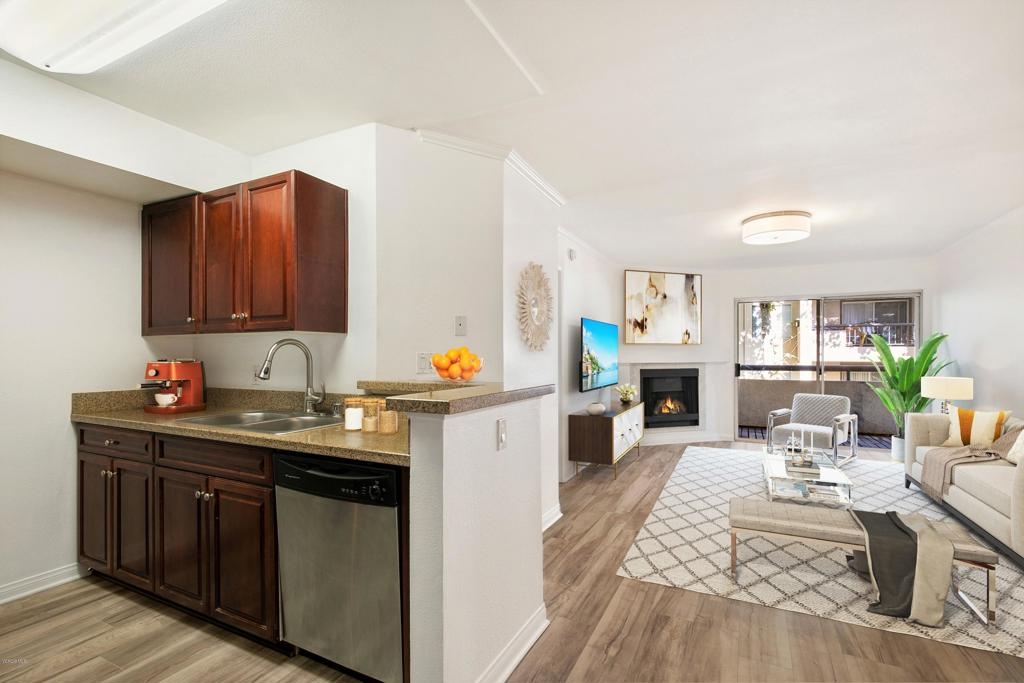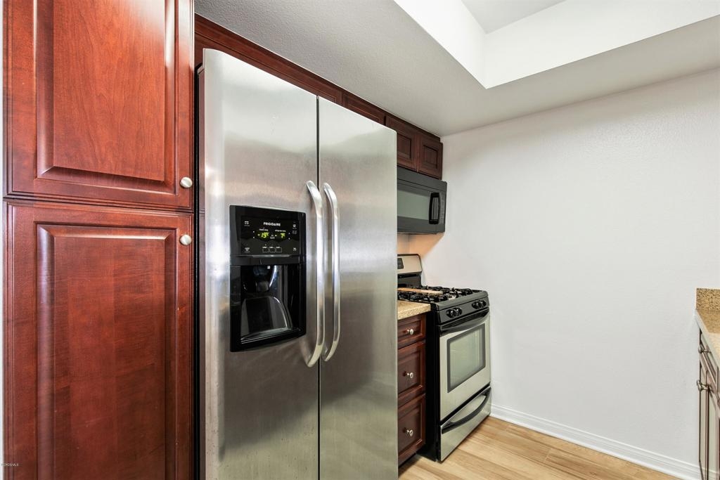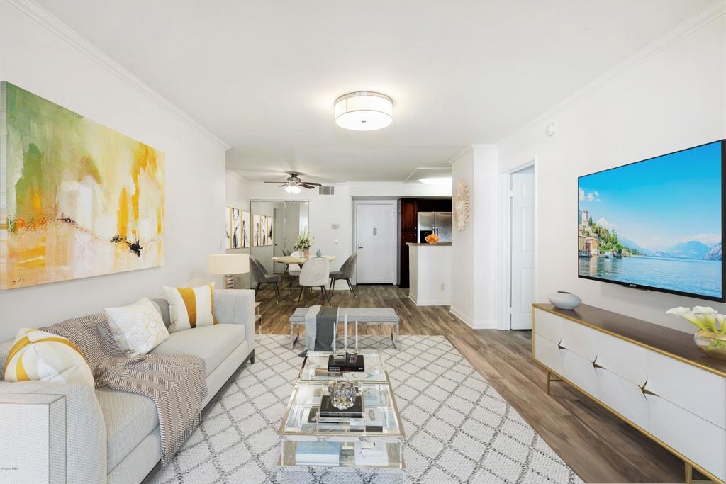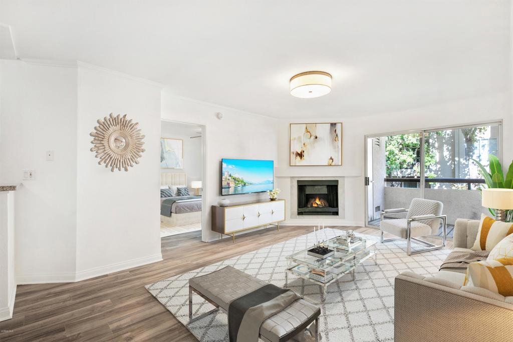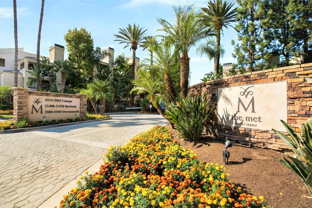 Welcome to one of the most desired floor plans in The Met. As you walk into this 2 bed 2 bath dual master suite, you will immediately notice the light and bright new flooring throughout and open floor plan. The upgraded kitchen includes granite counters and stainless-steel appliances. The living room is graced with crown molding, a cozy fireplace, and a separate dining area. The bathrooms have brand new quartz and marble vanities, modern light fixtures, and mirrors. The balcony offers the perfect space for BBQs and to enjoy the beautiful year-round weather that Woodland Hills has to offer. The property has in-unit laundry and two subterranean parking spots. The Met is a guard gated community that offers lighted tennis courts, full fitness center, saunas, indoor racquet ball and basketball courts, and resort style pools and spas. Located close to public transportation, shopping, restaurants, movie theaters, parks, and walking distance to The Village at Westfield Topanga.