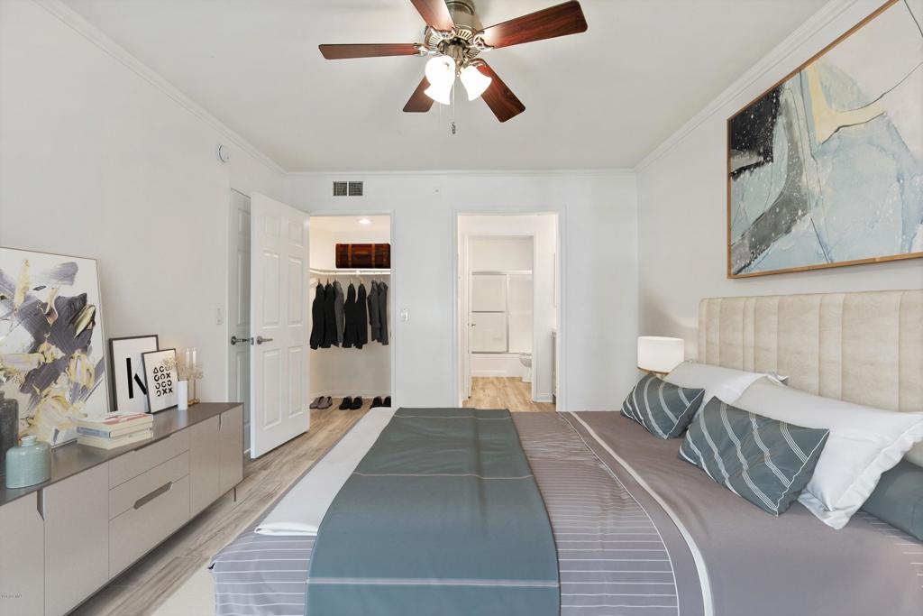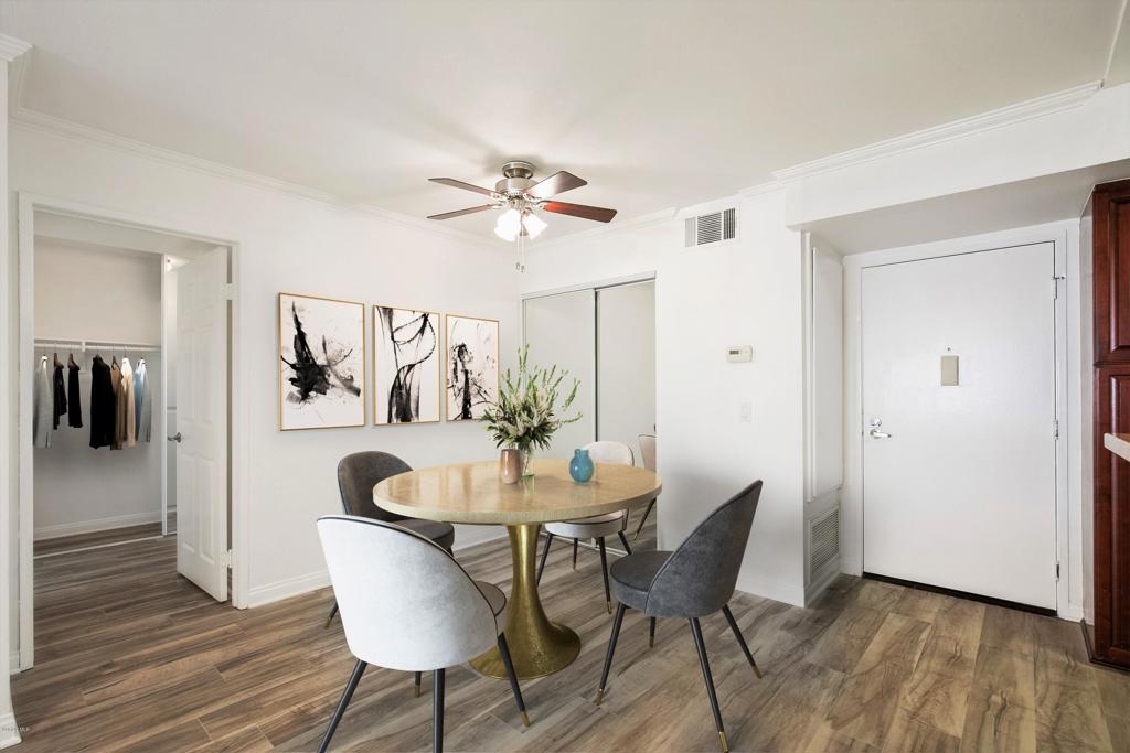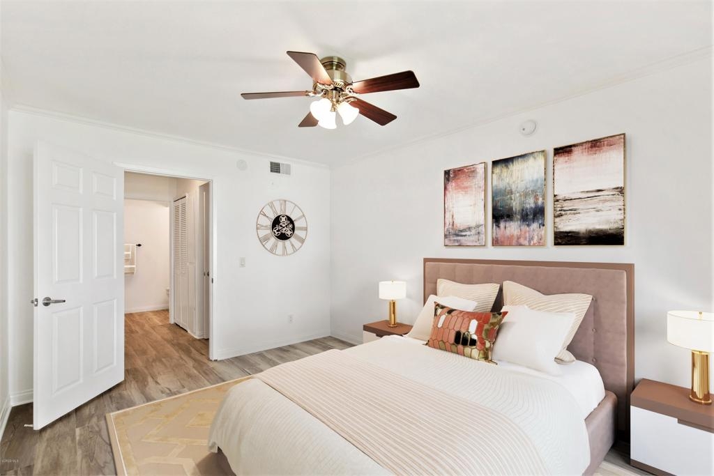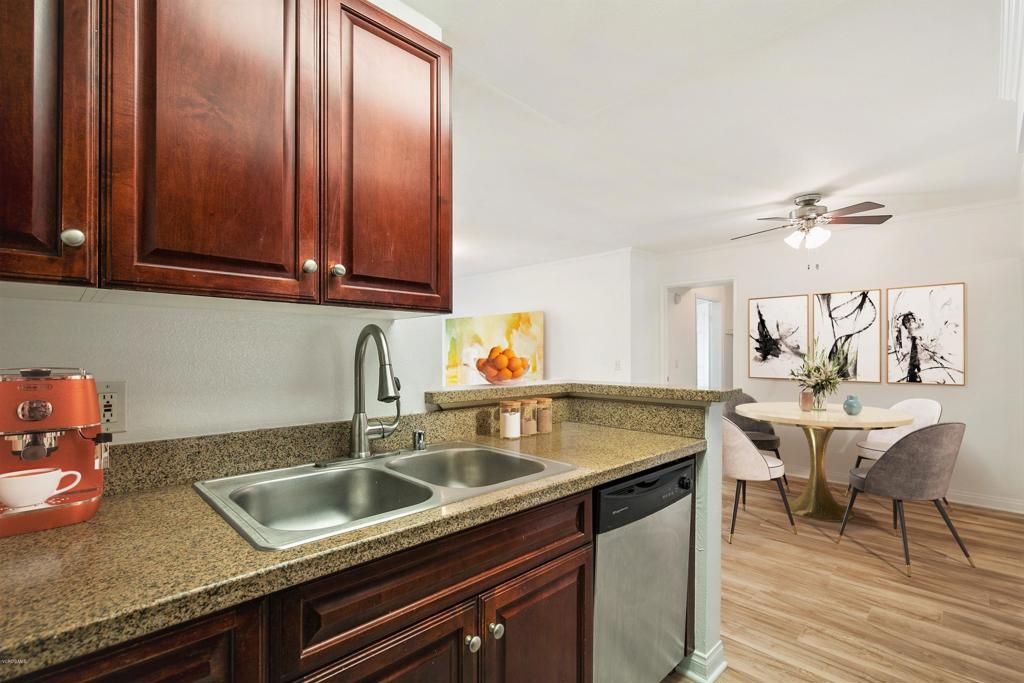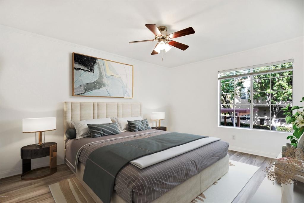 Welcome to one of the most desired floor plans in The Met. As you walk into this 2 bed 2 bath dual master suite, you will immediately notice the light and bright new flooring throughout and open floor plan. The upgraded kitchen includes granite counters and stainless-steel appliances. The living room is graced with crown molding, a cozy fireplace, and a separate dining area. The bathrooms have brand new quartz and marble vanities, modern light fixtures, and mirrors. The balcony offers the perfect space for BBQs and to enjoy the beautiful year-round weather that Woodland Hills has to offer. The property has in-unit laundry and two subterranean parking spots. The Met is a guard gated community that offers lighted tennis courts, full fitness center, saunas, indoor racquet ball and basketball courts, and resort style pools and spas. Located close to public transportation, shopping, restaurants, movie theaters, parks, and walking distance to The Village at Westfield Topanga.