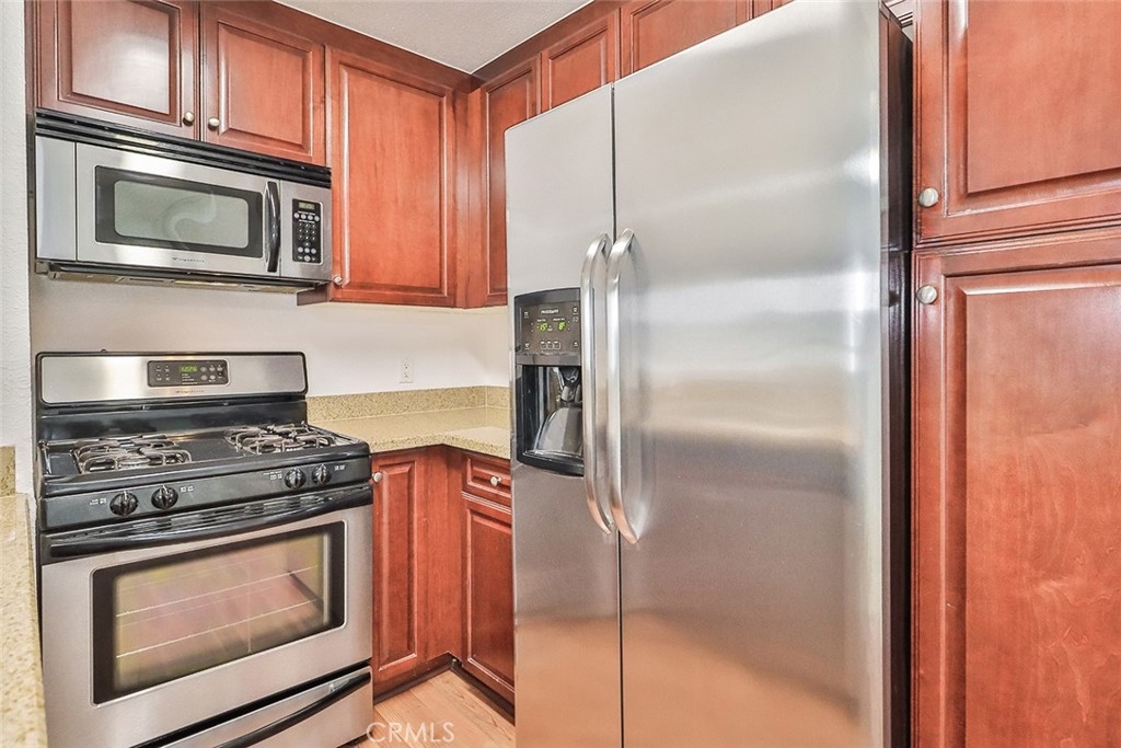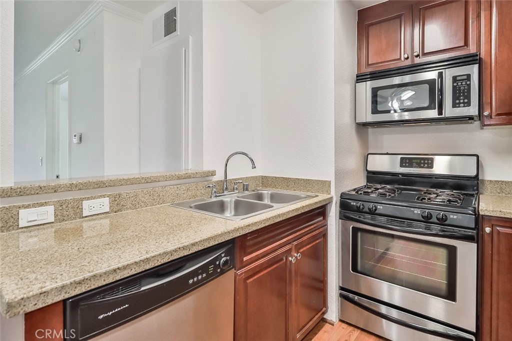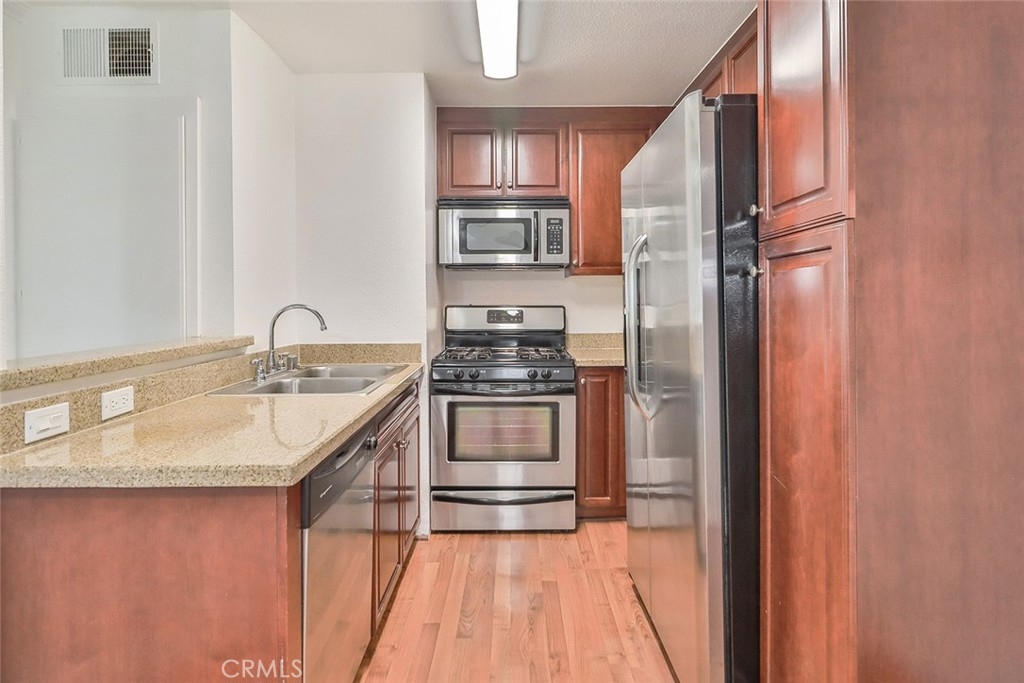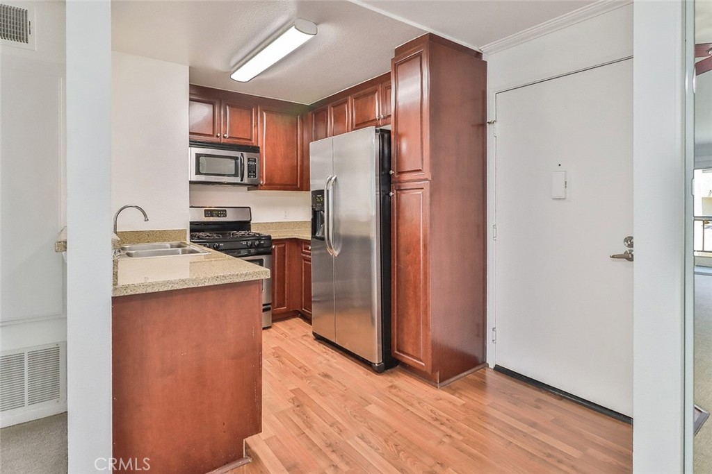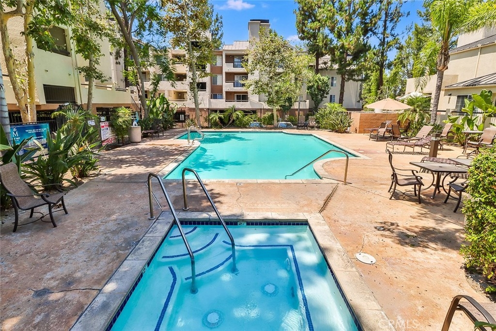 Step into this beautiful 1 bedroom 1 bath unit in the guard gated neighborhood of The Met in Woodland Hills Ca. This property is located perfectly on the second floor and is a corner lot property overlooking the swimming pool. The unit has many new features such as brand new carpet, newer air conditioning and heating, and nice bright white paint. This property is perfect for a first time homebuyer, a older resident looking for a single story with elevator from the garage, or even a perfect investment property. The Met features many pools, basketball courts, full gym, coin laundry, racquet ball courts, and guard gated access. The location of this community is perfect being just minutes from the 101 freeways, Ventura Blvd, great shopping and restaurants.