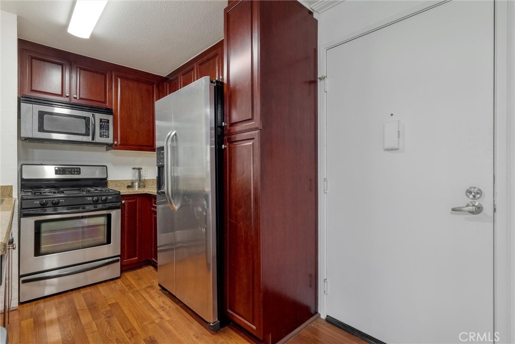 Step into this beautiful 1 bedroom 1 bath unit in the guard gated neighborhood of The Met in Woodland Hills Ca. This property is located perfectly on the second floor and is a corner lot property overlooking the swimming pool. The unit has many new features such as brand new carpet, newer air conditioning and heating, and nice bright white paint. This property is perfect for a first time homebuyer, a older resident looking for a single story with elevator from the garage, or even a perfect investment property. The Met features many pools, basketball courts, full gym, coin laundry, racquet ball courts, and guard gated access. The location of this community is perfect being just minutes from the 101 freeways, Ventura Blvd, great shopping and restaurants.