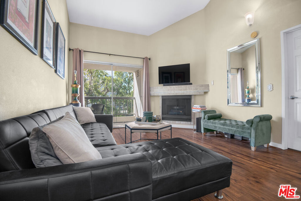 Enjoy Luxury Living at this beautifully upgraded 2 Bedroom, 2 Bath condo end unit within the Met. This well-maintained unit has wood floors, a fireplace, granite counter tops and stainless steel appliances and an open floor plan providing natural light and privacy. The private balcony offers the perfect space to dine al-fresco and enjoy the beautiful weather year-round. There is also a washer and dryer in the unit and comes with two parking spaces. The Met is located in an exclusive area near Warner Center and has one of the best amenity packages including: 24 hour guard-gated security, 4 resort style swimming pools, expansive poolside deck, 6 fully lit North/South tennis courts, basketball and racquetball courts, a state-of-the-art fitness center, children's playground, a community clubhouse with a pool table, and men's and women's locker rooms with saunas and steam showers. Very close to great shopping, dining and entertainment and easy access to freeways and public transportation.