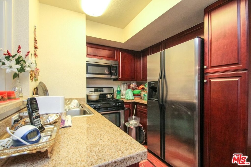 This wonderful one bedroom, one bathroom, plus Den unit featuring a spacious floor-plan with baseboard moldings, a fireplace, private balcony, great for seating and a nice sized den that can also be used as an office! The spacious bedroom is complete with two mirrored sliding door closets and an en suite bathroom. In the kitchen you will find dark wooden cabinets with metal handle finishes, stainless-steel appliances and granite counter-tops. Centrally located near the Warner Center, popular dining, shopping and minutes away from the 101 freeways! This huge beautiful corner complex known as The Met offers controlled access a community pools and a spas, a 24 hour gym, tennis courts, playground, saunas and a basketball/racquetball courts! Welcome to 21520 Burbank Boulevard!