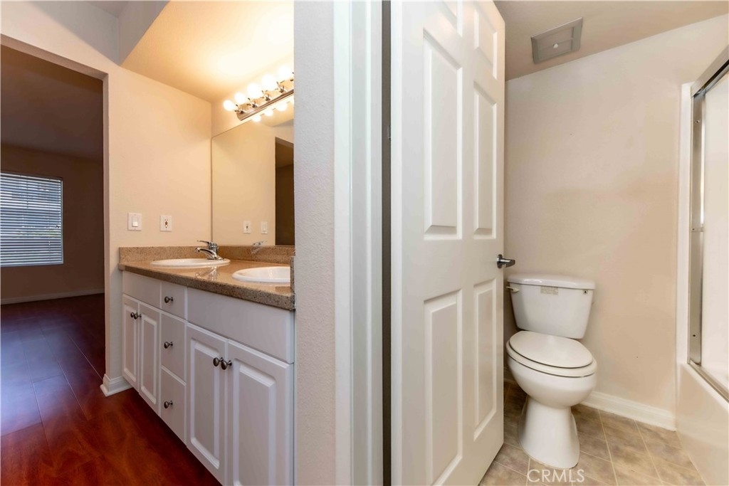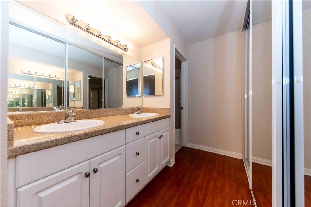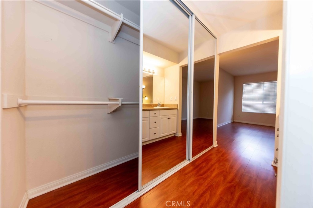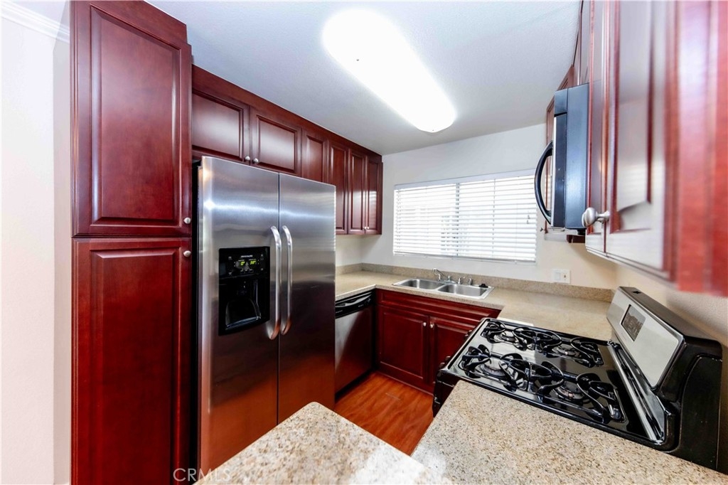 Welcome to the Met! First floor, 2-Bedroom, 2-Bathroom, perfectly situated within the guard-gated community in the heart of Woodland Hills. Upon entering, you're greeted by a spacious living and dining room featuring wood-like floor, a cozy gas fireplace, and slider doors that lead out to a generous balcony with room for seating, grilling, and extra storage closet. The well-appointed kitchen seamlessly opens to the living and dining area, perfect for entertaining. The primary bedroom boasts an attached full bath with double vanity sinks and a large closet. A secondary bedroom, with ample closet space, a full hallway bathroom, and convenient in-unit laundry area with washer and dryer. Additional community laundry facilities are available for larger items. This unit includes one subterranean parking space, plus a convenient parking spot located in front of the unit, close to the entrance for easy access. The resort style gated community has 4 pools and spas, several tennis, racquet, and basketball courts, as well as a fitness center, sauna, children's playground, and visitor parking. Easy access to freeways, parks, restaurants, and shopping such as, Whole Foods, the Topanga Mall... The HOA covers earthquake insurance, trash, sewer, water, and upkeep of common areas. Experience the best of resort-style living with the convenience of a prime location in Woodland Hills. Don’t miss out on this exceptional opportunity!