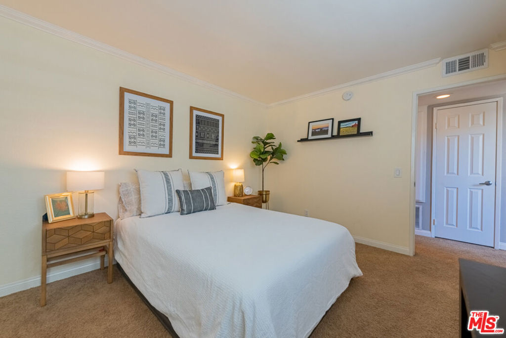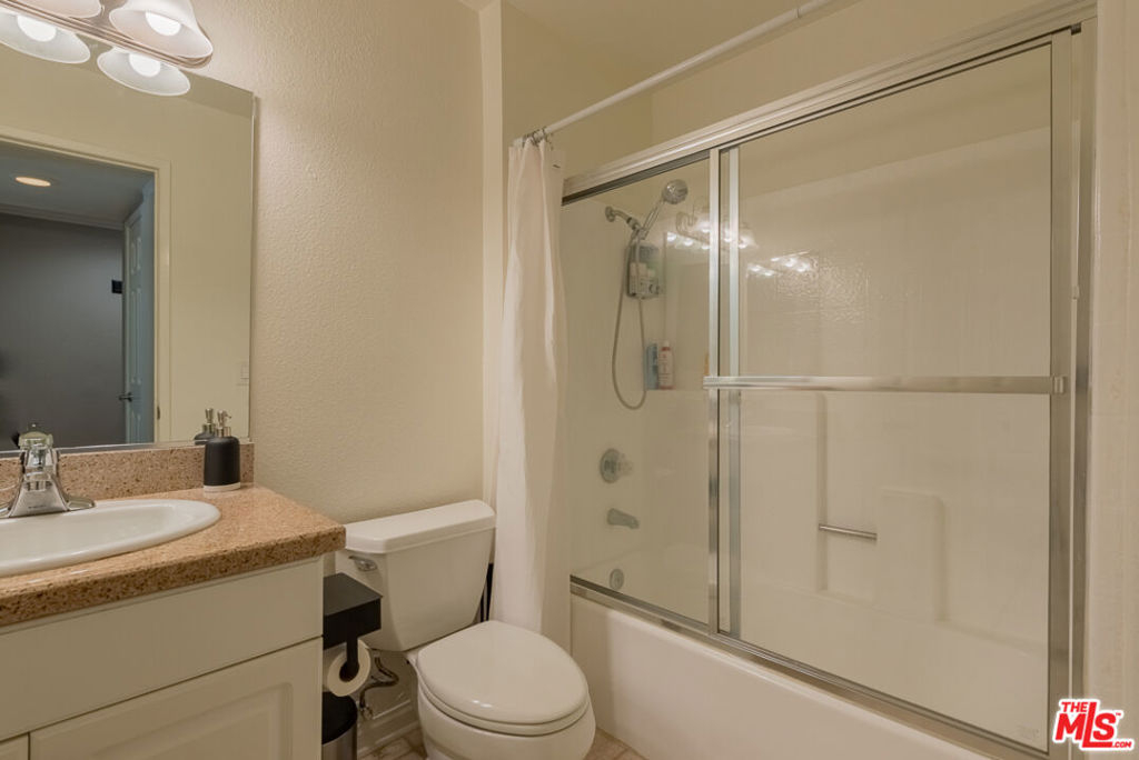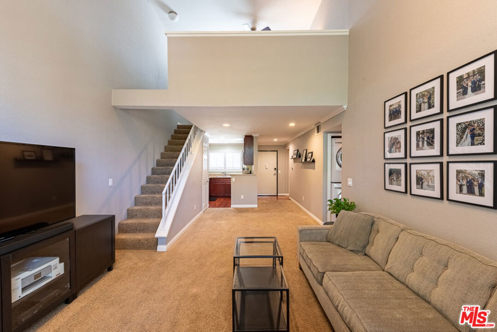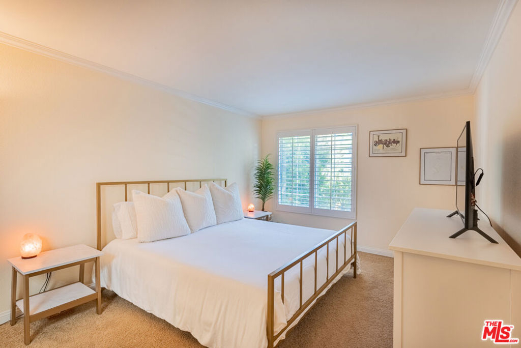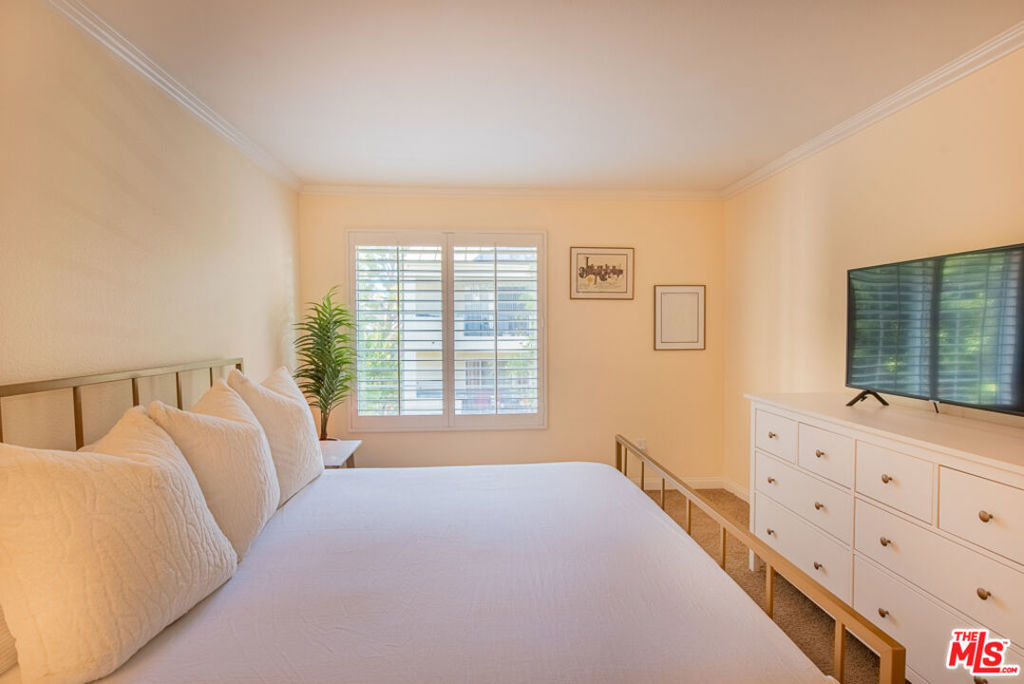 Welcome to this TreeTop Hideaway, located in the quietest and most desirable building of The Met. This wonderful unit boasts an expansive floor plan with 2 Bedrooms, 2 Bathrooms, and an extremely rare Loft! Walk into a large open living space bathed in sunlight, adorned with Cathedral style vaulted ceilings, and clerestory windows. Notable features include High quality Plantation Shutters throughout, Kitchen with granite countertops, cherry cabinetry, stainless steel appliances including a stainless-steel refrigerator, range, microwave, dishwasher, and a stackable washer/dryer. A large master bedroom with ensuite bathroom including dual vanities and plenty of closet space. The additional spacious guest bedroom includes mirrored closets which is adjacent to a guest bathroom. Walk upstairs to a prized Loft, which makes a perfect workspace and an incredible view overlooking the unit. Perched among the trees is your tranquil patio, surrounded by lush greenery and a sprawling courtyard. Private and Peaceful is an understatement. The community provides a 24-hour guard gate, 4 resort-style pools, 6 lighted tennis courts, racquetball court, indoor basketball court and an expansive fitness center. Centrally located close to The Village, Westfield Topanga Mall and more.