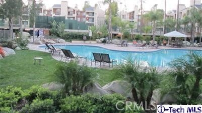 It's a Must See!!!! Gorgeous 1 Bedroom 1 Bath unit in the luxurious complex at the Metropolitan Warner Center! This condo has a beautiful living room with fireplace, brand new carpets, freshly painted and a large balcony. The updated kitchen has beautiful cherry wood colored cabinetry, stainless appliances and granite countertops. The bedroom and the living room offer large closets and storage. This resort style gated community offers 24 hour security, lush landscaping, 3 pools, spa, tennis courts, racquetball courts, fitness center and a clubhouse. Centrally located; close to shopping centers, dining, middle school.