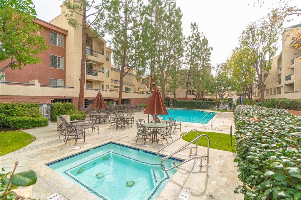 Introducing Luxury Living at the MET complex in one of the best locations. The MET is situated in the most convenient area of Woodland Hills, known for its vast amenities and you are literally near everything, Whole Foods, Public Parks, Shopping, Freeways and so much more. This extremely clean MOVE-IN READY- One Bedroom One Bath offers New Paint, Beautiful Crown Moldings, Updated light fixtures, a gas burning fireplace, plenty of closet space, a balcony overlooking the peaceful pool, and 2 tandem parking spots. It's a MUST SEE. This unit also gives you ultimate privacy as it is an end unit with only one shared wall and gives you direct access to the exit door which is steps away from your assigned parking spots. In addition, the MET is known for its Pet-Friendly environment, Heated community pool, rec room, Tennis Courts, BasketBall courts, and Gym. If you are looking for a peaceful quiet place that gives you the convenience of having all the amenities anyone would ever need, you've found it with this gorgeous unit.