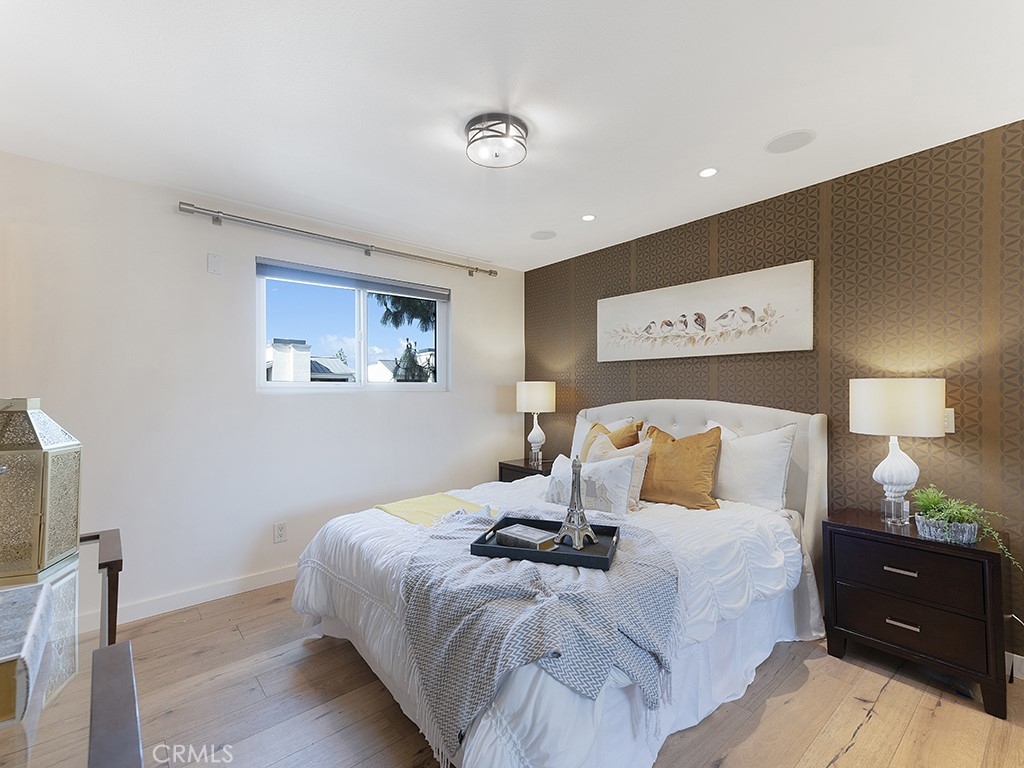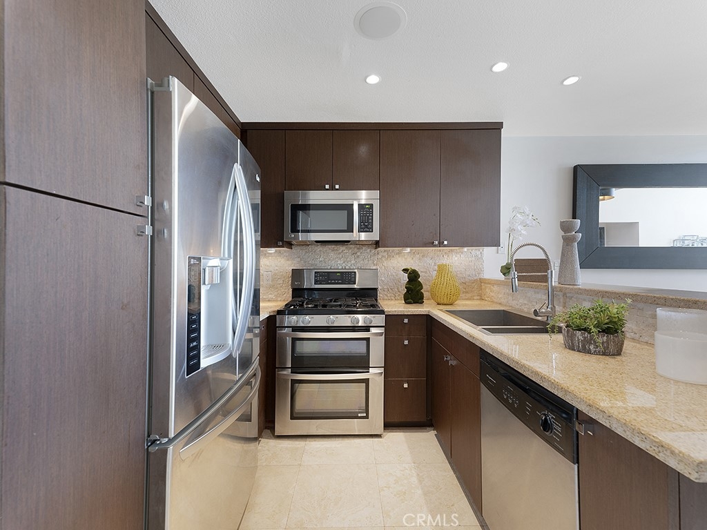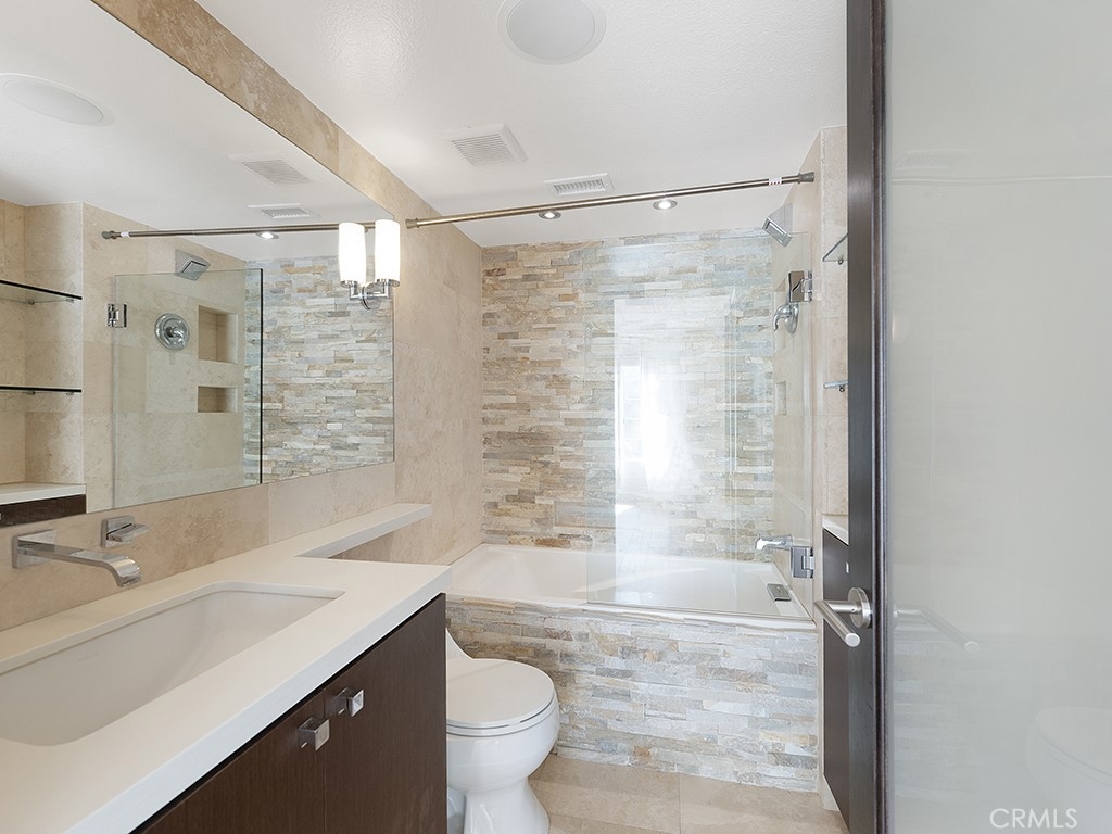 Resort style living at The Met in the heart of the Warner Center! This beautiful top floor corner condo has 2 bedrooms, each with ensuite bathrooms. From the moment you enter, you will notice the vaulted ceiling in the living room, the super clean kitchen with granite counters, sleek cabinetry and stainless steel appliances. Laminated floors throughout, luxury upgrades in the bathrooms, Nest thermostat, Control4 system framework which can potentially control your TV's, thermostat, and lights. Both bedroom closets have custom built-ins! Washer and dryer inside the unit. This gated community with 24 hour security has so many amenities, including 4 swimming pools, 6 lit tennis courts, a fitness center with sauna, children's playground, indoor racquetball and basketball courts. Also, this community is pet friendly and walking distance to upscale shops, restaurants, parks and entertainment.