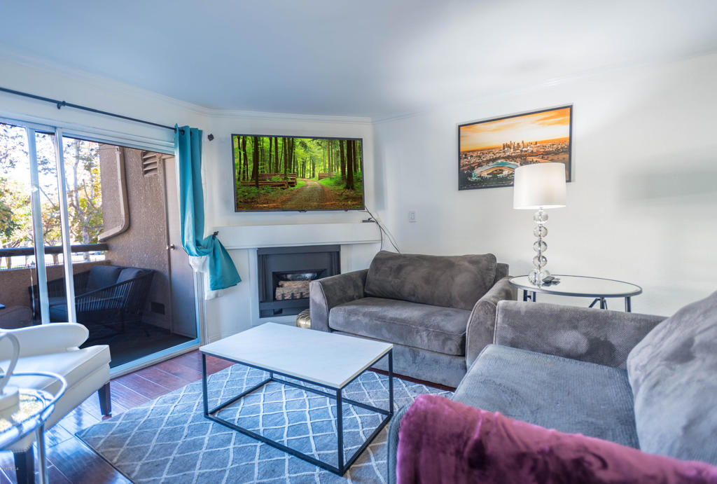 Fantastic opportunity to own a 1st floor unit in the desirable Met! This 2 bed + 2 bath spacious & beautiful unit is in a great location with a private balcony and in-unit laundry! The kitchen features cherry wood cabinetry, granite counters, breakfast bar and stainless steel appliances. Wood flooring and a corner fireplace create a perfect sanctuary to unwind and relax. Sliding glass doors open to the large balcony that extends the length of the unit. The unit also includes 2 covered tandem parking spaces. Close proximity to restaurants, bars, the mall and minutes away from the Village. The Met provides a guard gated complex with resort like amenities: 6 lighted tennis courts, 4 pools, indoor Basketball and Racquetball Courts, Fitness Center, Children's Play area and 24 Hour security. Great value! This property also works with the Fight For A Kid charity, in which a portion of the proceeds will go directly to the charity! https://fightforakid.org/