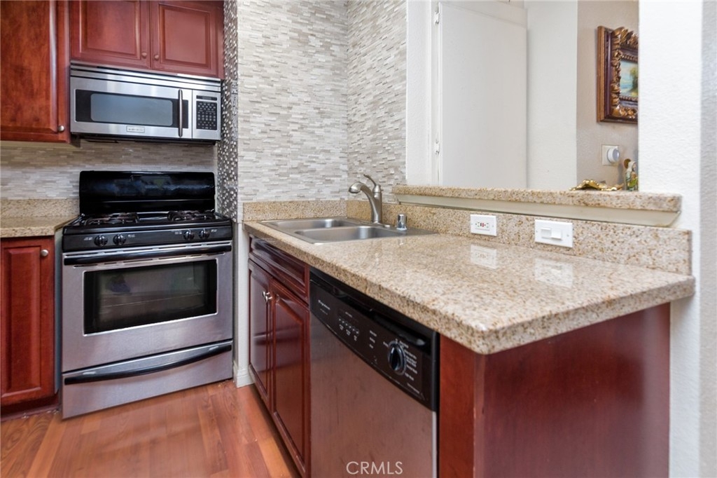 Welcome to this beautiful 1 bed, 1 bath, 740 sq. ft. unit plus a loft with its own closet that can be used as a 2nd bedroom at The Met complex. Light and Bright, with High vaulted ceilings. This unit features carpet, granite countertops, stainless-steel appliances, fireplace and an open balcony with tons of natural lighting. Prime Location in the complex with 2 tandem covered parking spots. The Met provides a guard-gated complex with resort-like amenities: 6 lighted tennis courts, 4 pools, indoor Basketball and Racquetball Courts, Fitness Center, Children's Play area, pet-friendly environment, and 24-Hour security. The Met is located within walking distance to The Village, Warner Center Park and all the dining, shopping & entertainment Warner Center has to offer. This turnkey condo will not disappoint you!