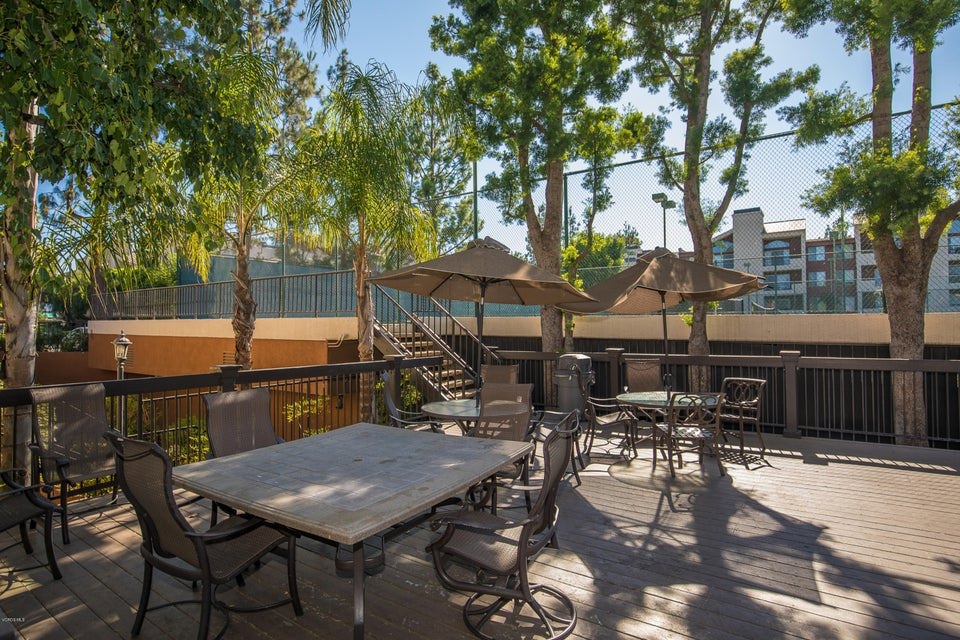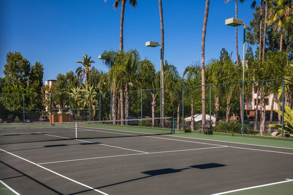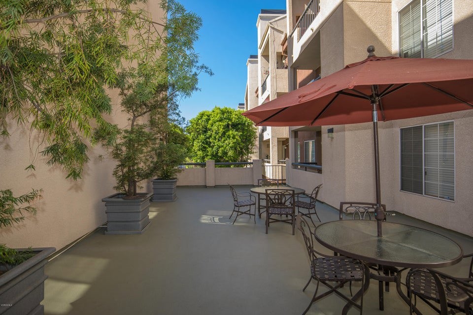 Greatly located, first floor unit with over-sized patio, views of the courtyard and green belt. Hardwood floors, new carpet in bedrooms, fireplace, kitchen with granite counter tops and stainless steel appliances, refrigerator included. Bedrooms with built-in closet organizers. Bathrooms with granite counters. Freshly painted inside. Washer and dryer included. The Met is an exclusive, guard-gated community located in highly prestigious Warner Center with resort-style amenities including four pools, full fitness center, six lit tennis courts, children's playground, main poolside deck, indoor basketball court and racquetball court. All located minutes from shopping, dining and entertainment. Welcome Home!