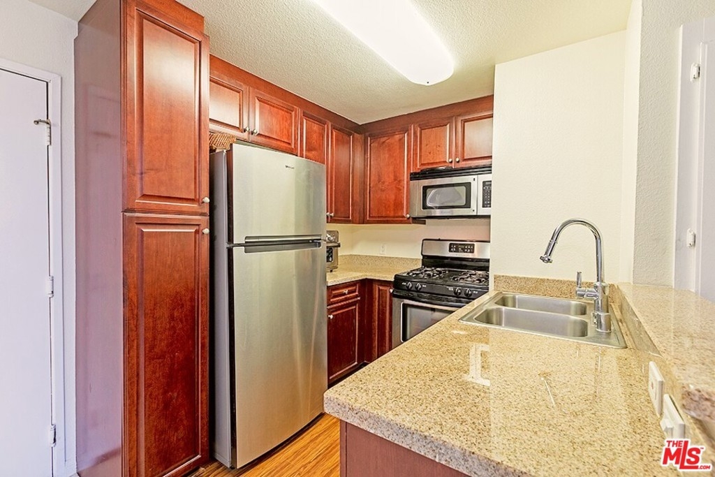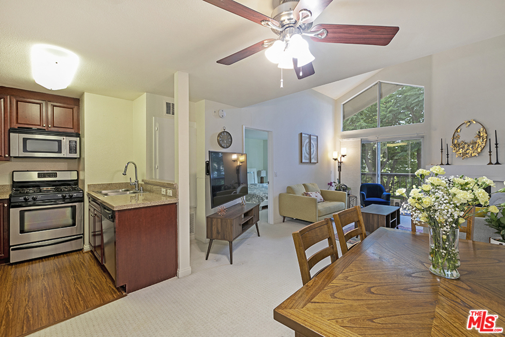Rare opportunity, top floor corner condo in The Prestigious MET, Woodland Hills!! Entering the unit, you will notice the open floor plan, granite kitchen countertop, stainless-steel appliances, fireplace and high ceiling in the living room. As you walk in, the condo boasts its master bedroom, large mirror closets, and guess what!? A spacious balcony, with a greenery view! This top floor quiet and bright unit is located close to the building's elevator and has two assigned tandem parking spaces. The 24/7 guard-gated resort-style community offers four pools, fitness center, six tennis courts, children's playground, indoor basketball and racquetball courts all while being minutes to Westfield Topanga and The Village, AMC, Costco and other local dining, shopping and entertainment centers along with instant access to 101 and Topanga Canyon. This condo is in an immaculate condition for the next lucky owner, just bring in your furniture and enjoy!