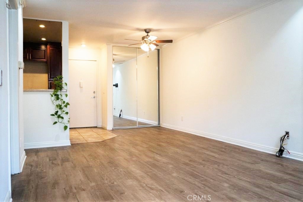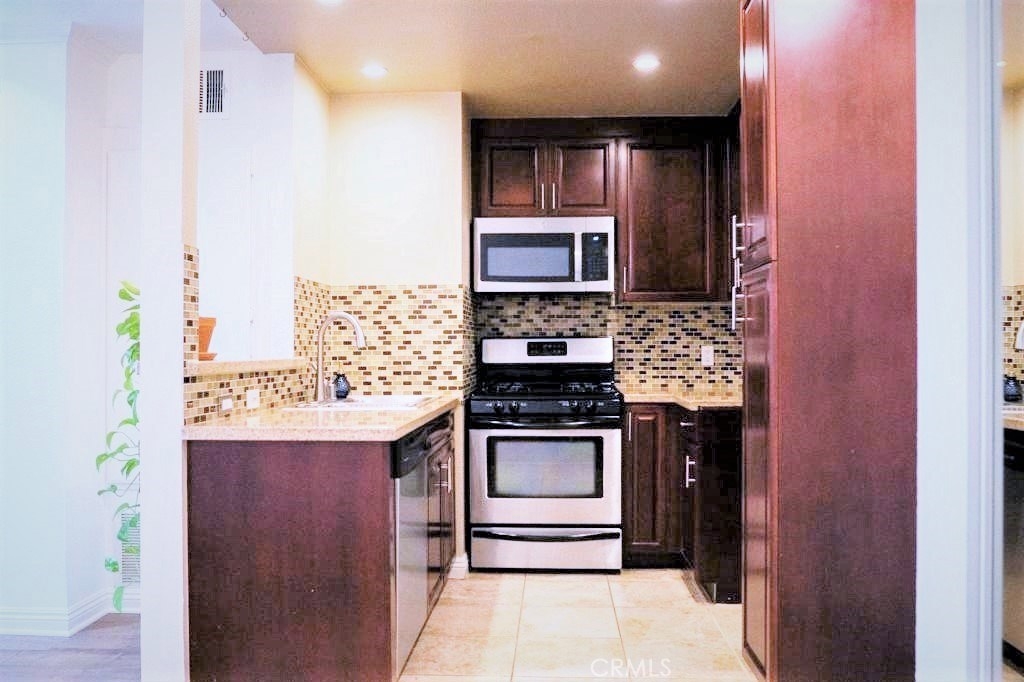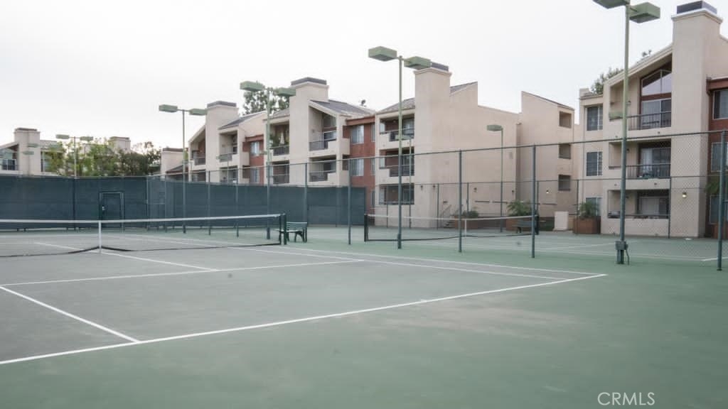 This home with new modern features is in a great location and is in step with how you want to live, work, and play. Located in the center of everything the MET has to offer, this tastefully upgraded first floor,1 bedroom,1 bath condo puts the best of the city within your reach, close to shopping, dining, entertainment. Your journey starts as you explore this highly prestigious, guard-gated, resort-like community which offers 24-hour security, 2 assigned parking spaces, a fitness center, beautifully landscaped grounds with amenities including swimming pools, tennis, basketball, and racquetball courts. Discover this sunlit home as you step into an open living room with a gorgeous corner wall fireplace, dining area and a contemporary kitchen. The kitchen is equipped with sleek granite countertops, glass tile backsplash, touchless faucet, and a suite of fully integrated stainless steel appliances. This home is pre-wired showcasing fully recessed lighting throughout, wood shutters, luxurious new flooring, fresh paint, central heating and cooling and a tiled private balcony. Just off the living area is a spacious master retreat with an en-suite bath with granite countertops which features dual mirrored wall closets. Nothing pairs with personal comfort like this perfect space. Come and envision your new beginning while it is still available. HOA dues include water, trash, earthquake insurance. FHA/VA approved.