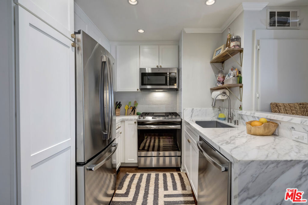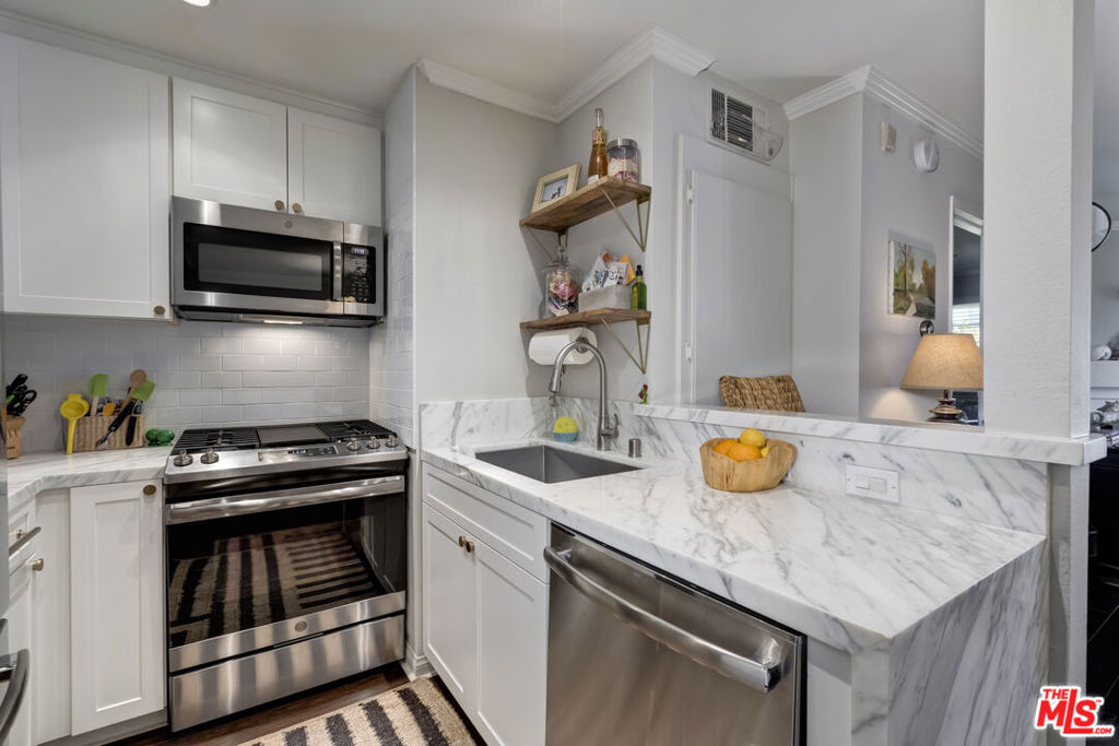 CORNER/END UNIT WITH NOBODY ABOVE AND ONLY 1 SHARED WALL! Impeccably redone unit with no expense spared. Kitchen is well-appointed with Calacatta premium gold marble with waterfall drop, subway tiled backsplash, stainless appliances and custom cabinetry. Bath updated with Calacatta marble, Kohler faucet, penny round tile and Toto toilet. Other features include: Nest thermostat, recessed lighting, designer closets, recent new heat & a/c, crown molding and designer paint colors. Inclusions: TV, patio planters, dining fixture, window treatments, appliances. Close to gym, tennis and main pool. GREAT parking spot next to lobby. Enjoy all the amazing lifestyle benefits offered at The MET: guard gated community with tennis, basketball, racquet ball, gym/sauna, 4 pools/spas, playground, clubhouse, guest parking, social events and more! Close to shops, restaurants, parks and easy freeway access. Open Sat & Sun April 23 & 24 from 1-4pm. Offers due Tuesday, April 26th at 5pm.