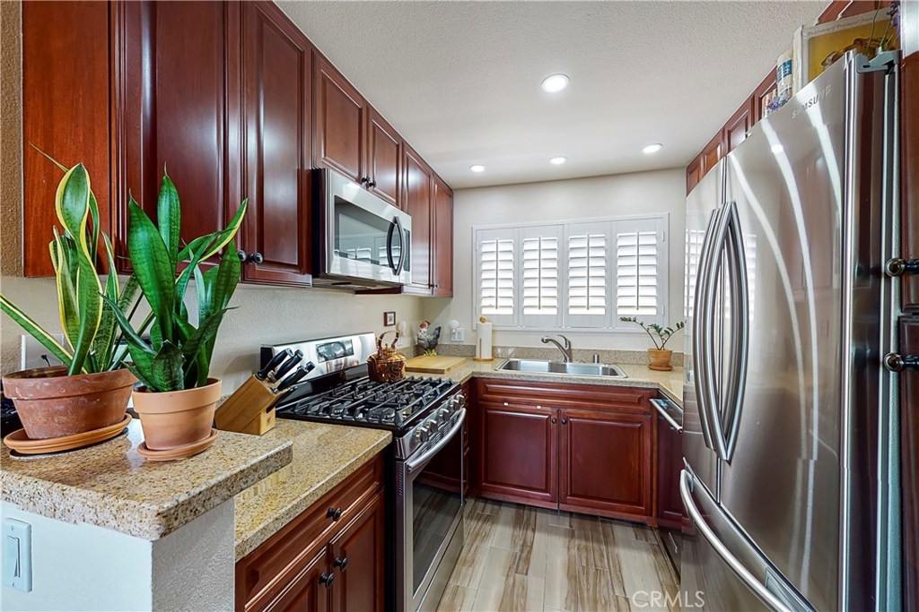 This is the most beautiful condo at The Met! First, it's location is the best being on the third floor, inside the complex with views! When you first step in you will notice the wood like premium laminate flooring and the great layout. Vaulted ceiling in the living room with two large bedrooms and two recently remodeled bathrooms. The seller spent nearly $50,000 in remodeling this condo. Appliances are less than two years old. Elegant shutters and drapes adorn the windows and sliding glass door. The interior was painted within the last two years. Ceiling fans are in the bedrooms and dining area. The stacking washer and dryer are hidden behind a custom shutter door. Elegant fireplace in the living room. The electrical box is new as is the roof. Recessed lighting in the kitchen and bathrooms. The bedrooms have new carpet and custom closets and closet doors. HOA dues include water, earthquake and fire insurance and maintenance of the grounds. The Met has several pools, tennis courts, a gym, spa, playgrounds and basketball courts. There is 24 hour security and the entire complex is gated.This is truly resort style living at it's best. This is one of the few condo complexes in the valley that is FHA approved!