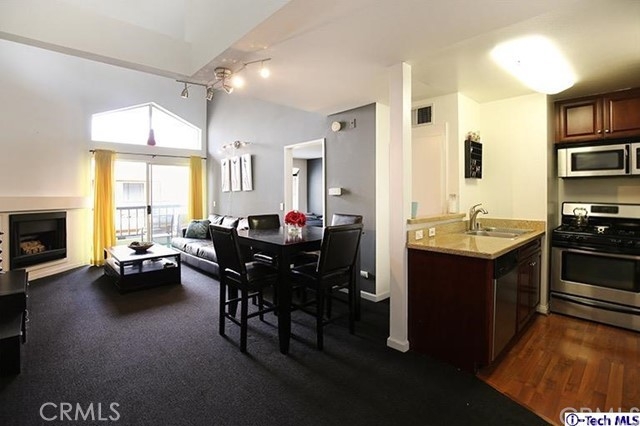 FHA approved! Top floor, one bedroom plus loft unit. This unique unit is perfectly situated within a resort style complex, with a quiet, north facing courtyard view. Upon entry, you are greeted with an open floor plan, soaring ceilings, and floor to ceiling windows that allow for an abundance of natural light. The loft, which features it's own closet, would make a perfect second bedroom, office, den, or... Additional features include granite counter tops throughout, stainless steel appliances, fireplace, a private covered balcony with additional storage, two covered parking spaces, and much more. The professionally managed and maintained Metropolitan (The Met) at Warner Center is a highly sought after complex which offers 24/7 security guards, four pools, spa, sauna, full fitness center including cardio and free weights, six tennis courts, playground/park, indoor basketball and racquetball courts, with plenty of guest parking, all conveniently located close to unit #315. Welcome Home!