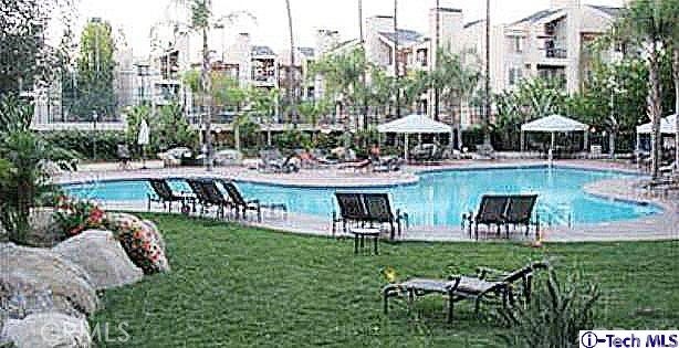 It's a Must See!!!! Gorgeous 2 Bedroom 2 Bath unit in the prestigious and luxurious Metropolitan Warner Center! This condo has a beautiful living room with fireplace, brand new carpets, freshly painted and a large balcony. The updated kitchen has beautiful cherry wood colored cabinetry, stainless appliances and granite countertops. The bedroom and the living room offer large closets and storage. This resort style gated community offers 24 hour security, lush landscaping, 3 pools, spa, tennis courts, racquetball courts, fitness center and a clubhouse. Centrally located; close to shopping centers, dining, middle school.