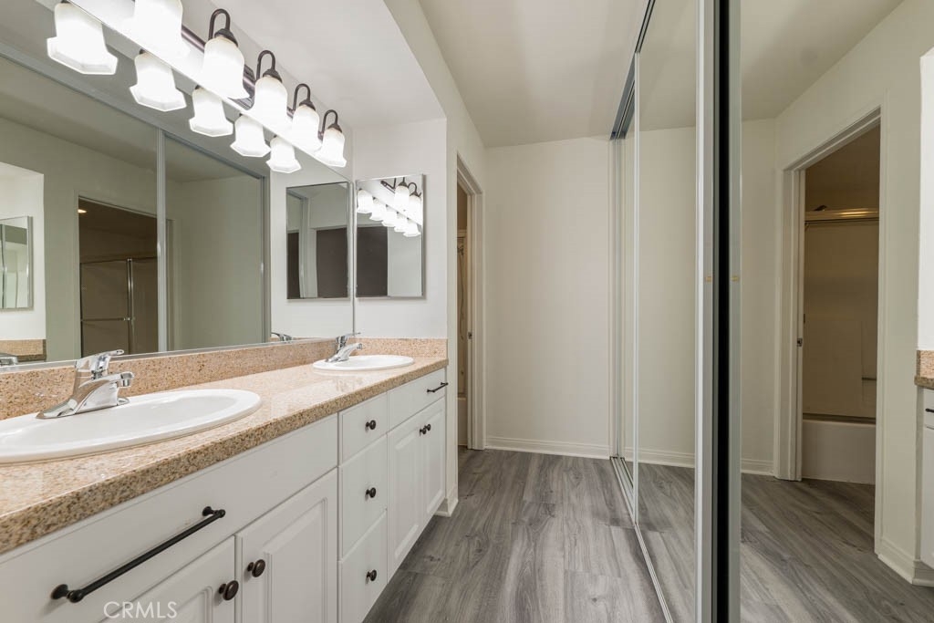 Rare offering at the Met for an extensively updated move in ready unit. One of the most private locations (not looking into another unit's balcony) in a quiet location away from busy streets or freeway. From the moment you enter, you will notice the functionality and storage offered by this floor plan. This unit features the highly sought after "2E" floor plan which utilizes an open concept to provide both privacy and functionality. UPGRADES include: totally remodeled kitchen with cabinets, countertops, sink, custom backsplash and upgraded Samsung appliances installed, engineered wood flooring, newly installed vinyl flooring in master bathroom, recessed lighting and Restoration Hardware draperies. Additional Features include: Convenient Location Close to Elevator, 2 Car Assigned Parking and private laundry. The private balcony offers the perfect space to dine al-fresco and bask in the beautiful year-round weather that Woodland Hills has to offer. This is a great opportunity to own in the Met Woodland Hills Community. Walking distance to local parks, restaurants and shops like Whole Foods. Complex is FHA/VA Approved. The Met, situated in the highly prestigious Warner Center, is an exclusive, guard-gated community spread across 26 acres of verdant grounds. The community consists of resort-style amenities including four pools, state of the art fitness center, six fully lit North/South tennis courts, children's playground, expansive poolside deck, indoor basketball court and racquetball court all while being minutes to local shopping, dining and entertainment in the heart of the San Fernando Valley. A true getaway that you can call home.